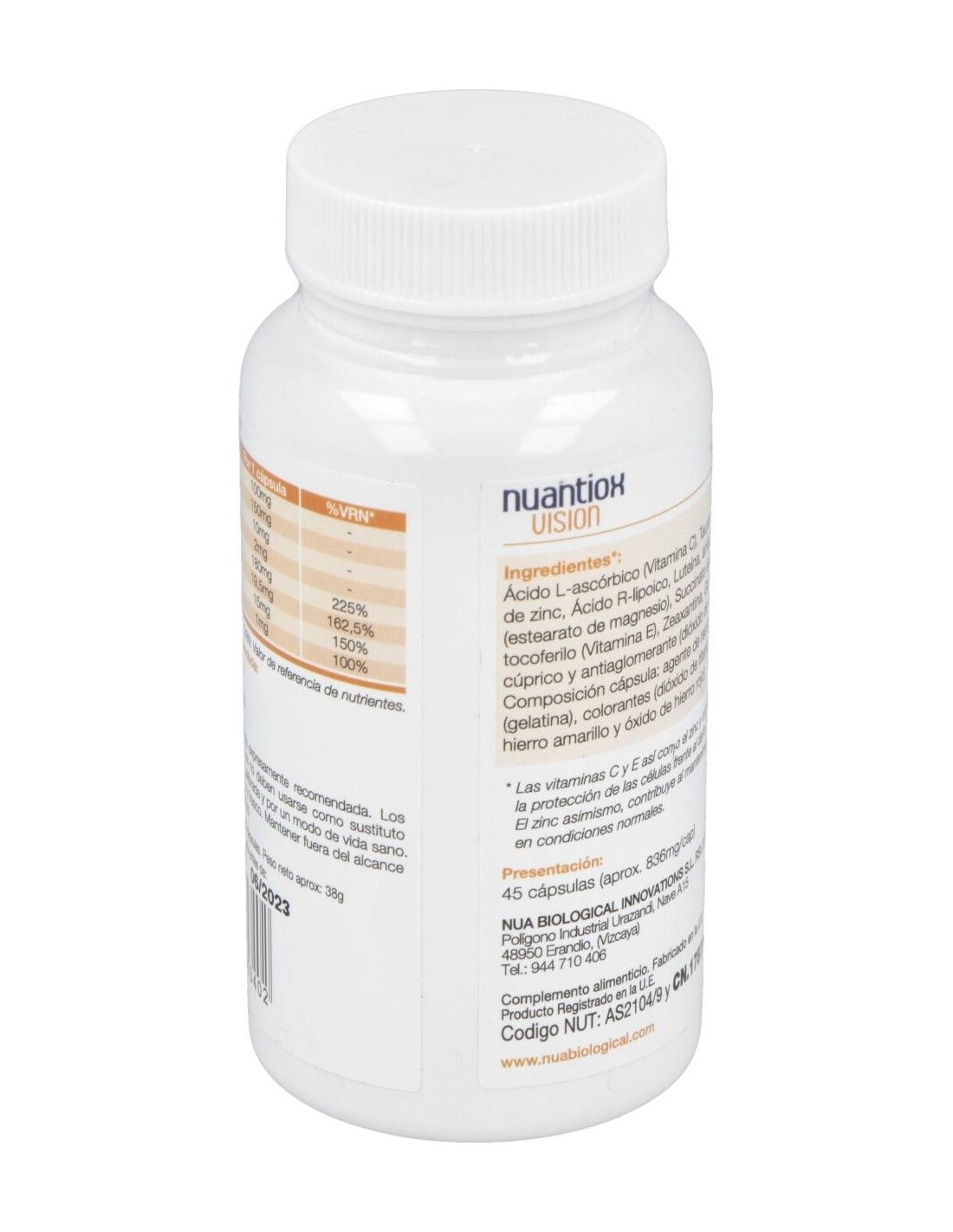 Complemento antioxidante para apoyar el sistema visual. Su composición coincide con la utilizada en el preparado A del Nuadha Visión. A diferencia del anterior producto, Nuantiox Visión no lleva DHA y está pensado para aquellas personas que solo buscan un apoyo antioxidante para su sistema visual. Los nutrientes antioxidantes de Nuantiox Visión incluyen todos los elementos son clave para la retina (Vitamina C, E, Luteína, Zeaxantina, Zn y Cu). Sin embargo, también se incluyen 3 nutrientes adicionales que son clave para la función visual: el DHA, el ácido R-lipoico y la taurina. No debe superarse la dosis expresamente recomendada. No debe usarse como sustituto de una dieta variada y equilibrada. Conviene guardar el envase en un lugar fresco y seco. Debe mantenerse fuera del alcance de los niños más pequeños.