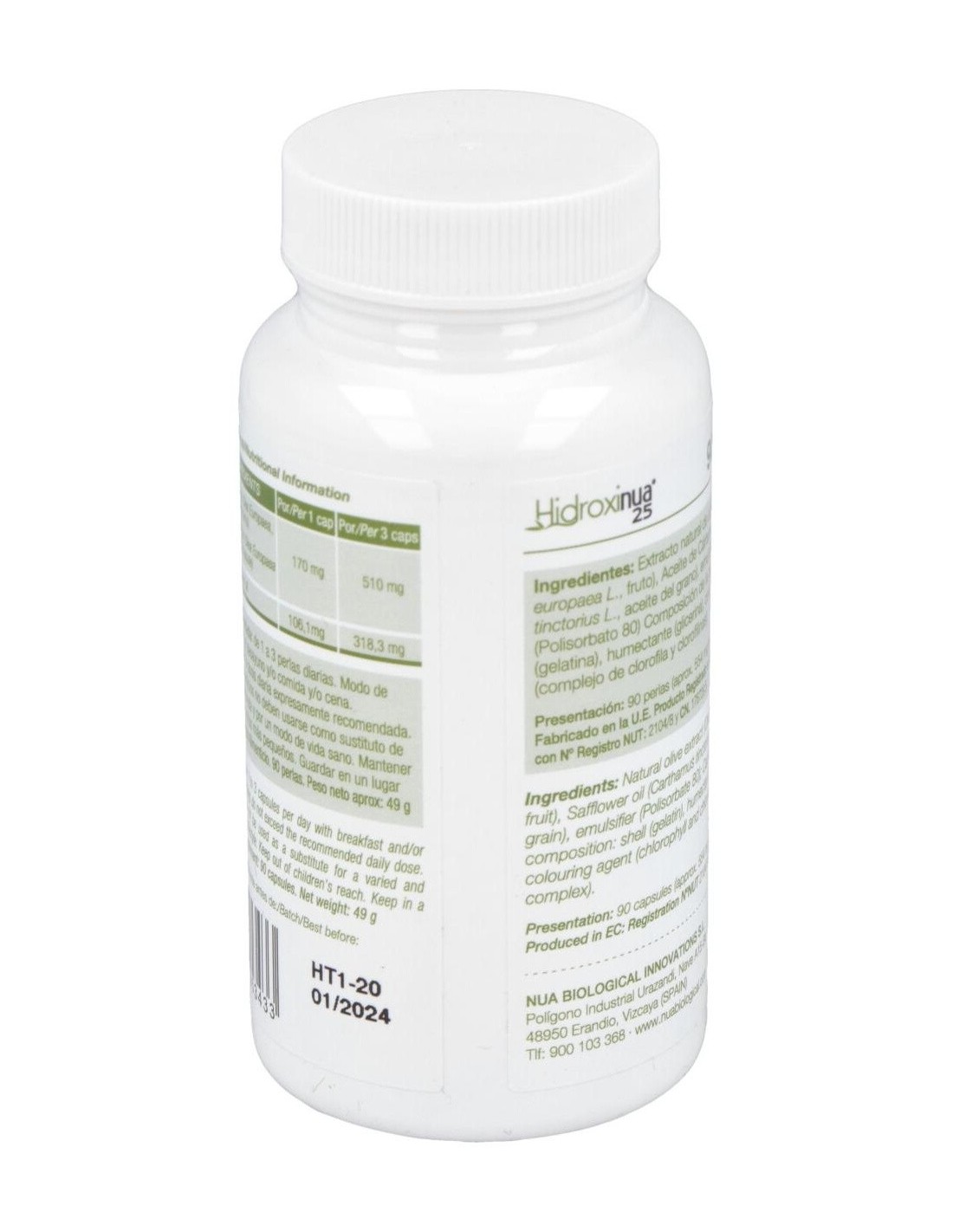 Extracto natural del fruto de Olea europaea ( 25,5 mg de Hidroxitirosol/perla)..510 mg