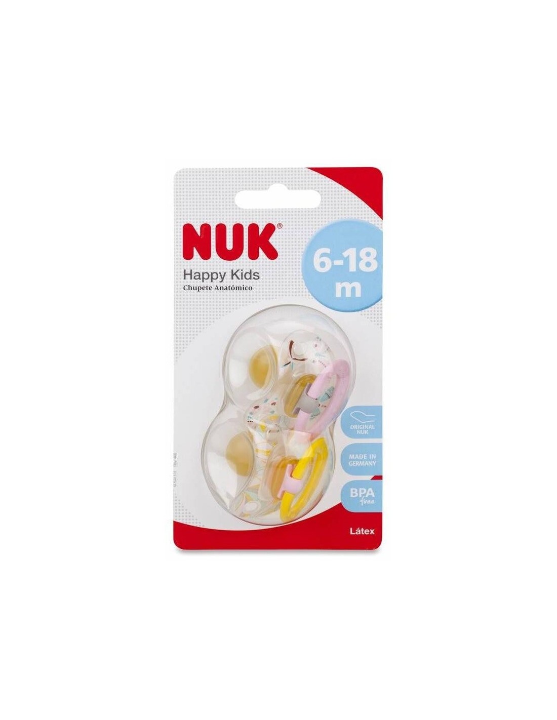 Tetina extra suave de látex: reduce la presión en los dientes y la mandíbula.\ Más espacio para la lengua y el movimiento natural de succión.\ Reduce el riesgo de mala alineación de la mandíbula y los dientes.\ Con sistema de ventilación NUK AIR SYSTEM. El aire escapa a través de la tetina, lo que permite que ésta permanezca suave y moldeable y además previene la deformación de la mandíbula del bebé.\ Caja portachupetes higienizable de 2 uds.\ Los modelos y colores pueden variar con respecto a la imagen.