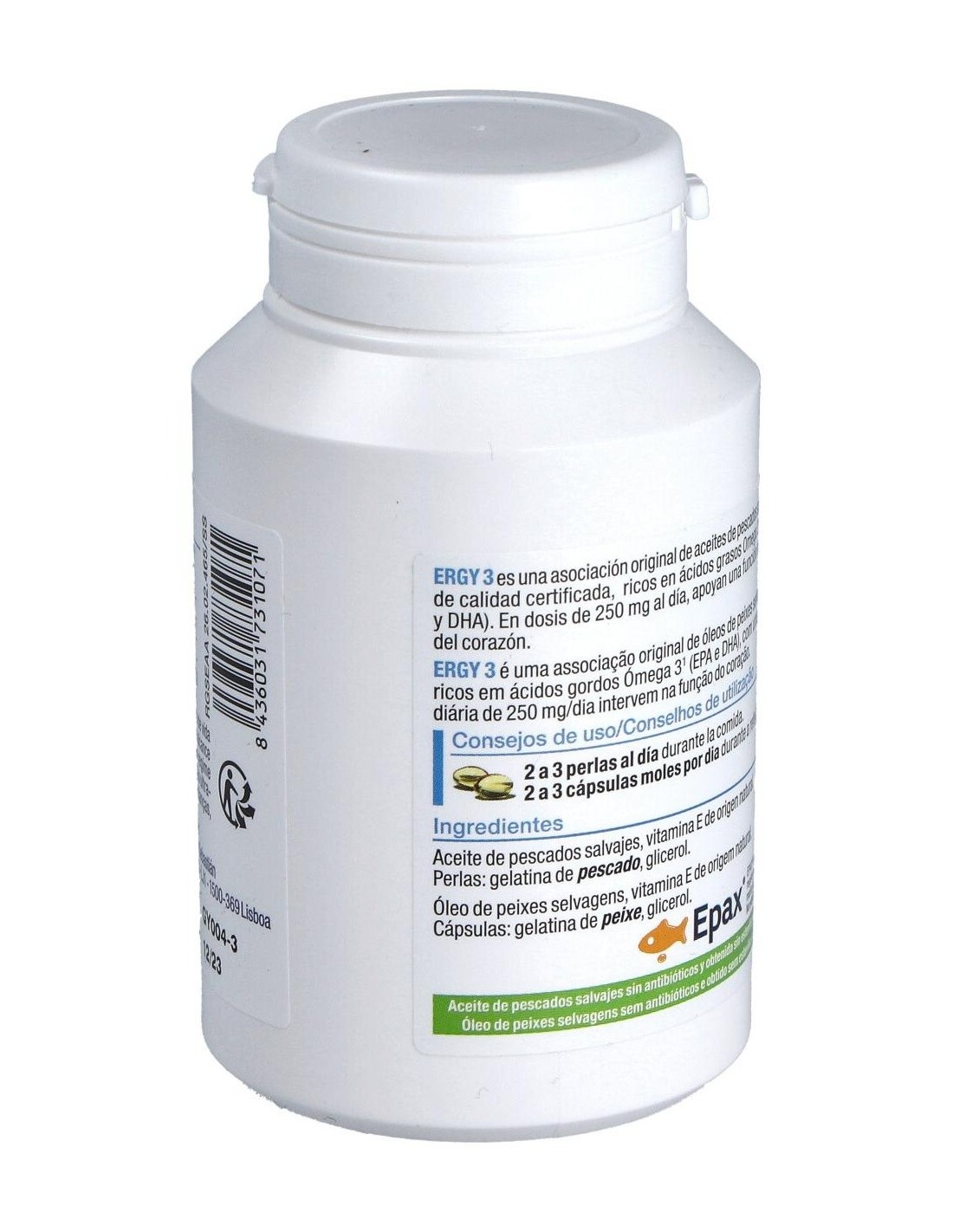 Complemento alimenticio compuesto de aceites de pescados EPAX de calidad certificada. Los pescados grasos como la anchoa, utilizado en ERGY 3, permiten obtener un aceite rico en ácidos grasos omega-3, especialmente en EPA y DHA.