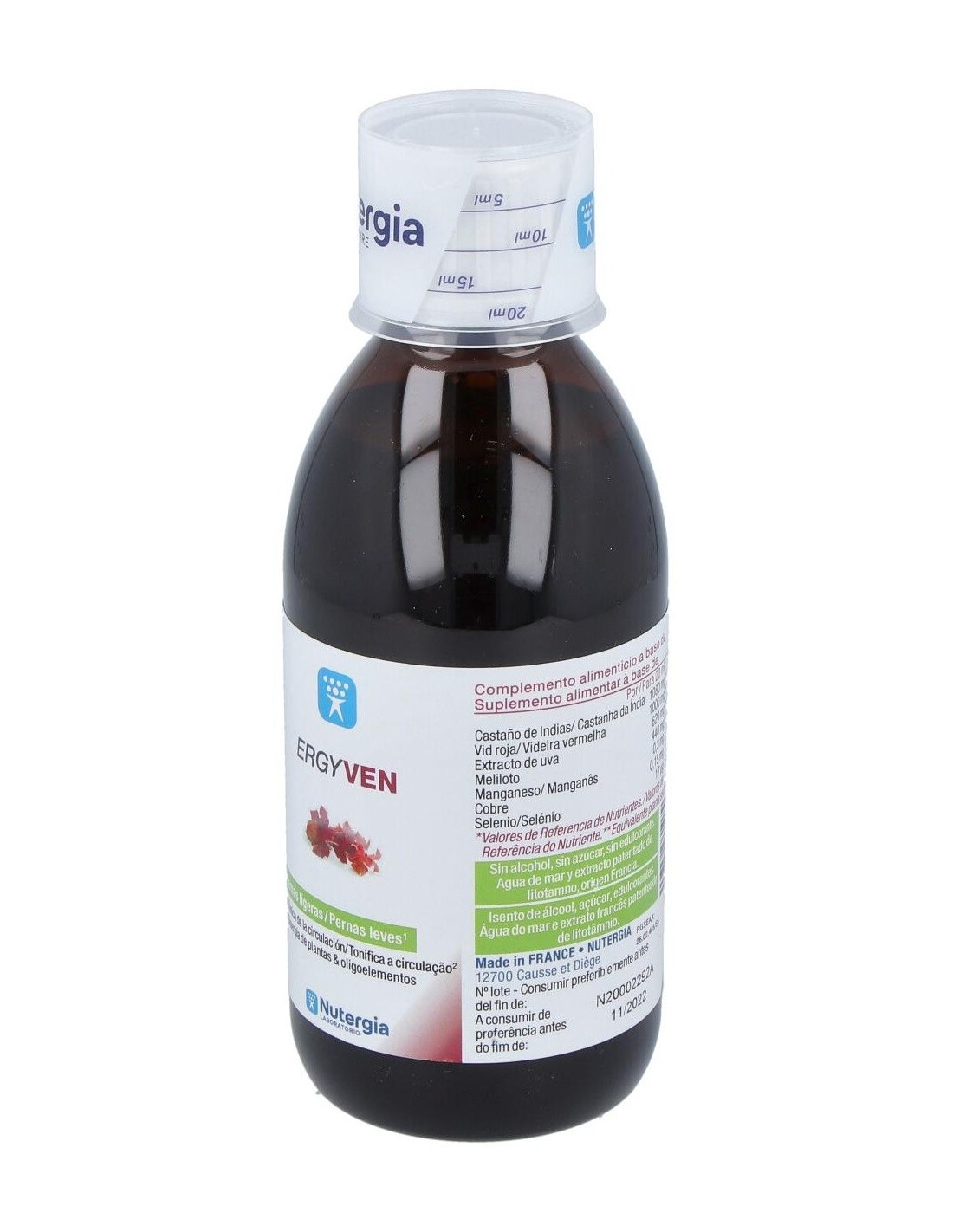 Ergyven (Circulación Venosa) 250Ml de Nutergia es un complemento alimenticio para personas que buscan apoyar la salud venosa, formulado con ingredientes que contribuyen al bienestar circulatorio.