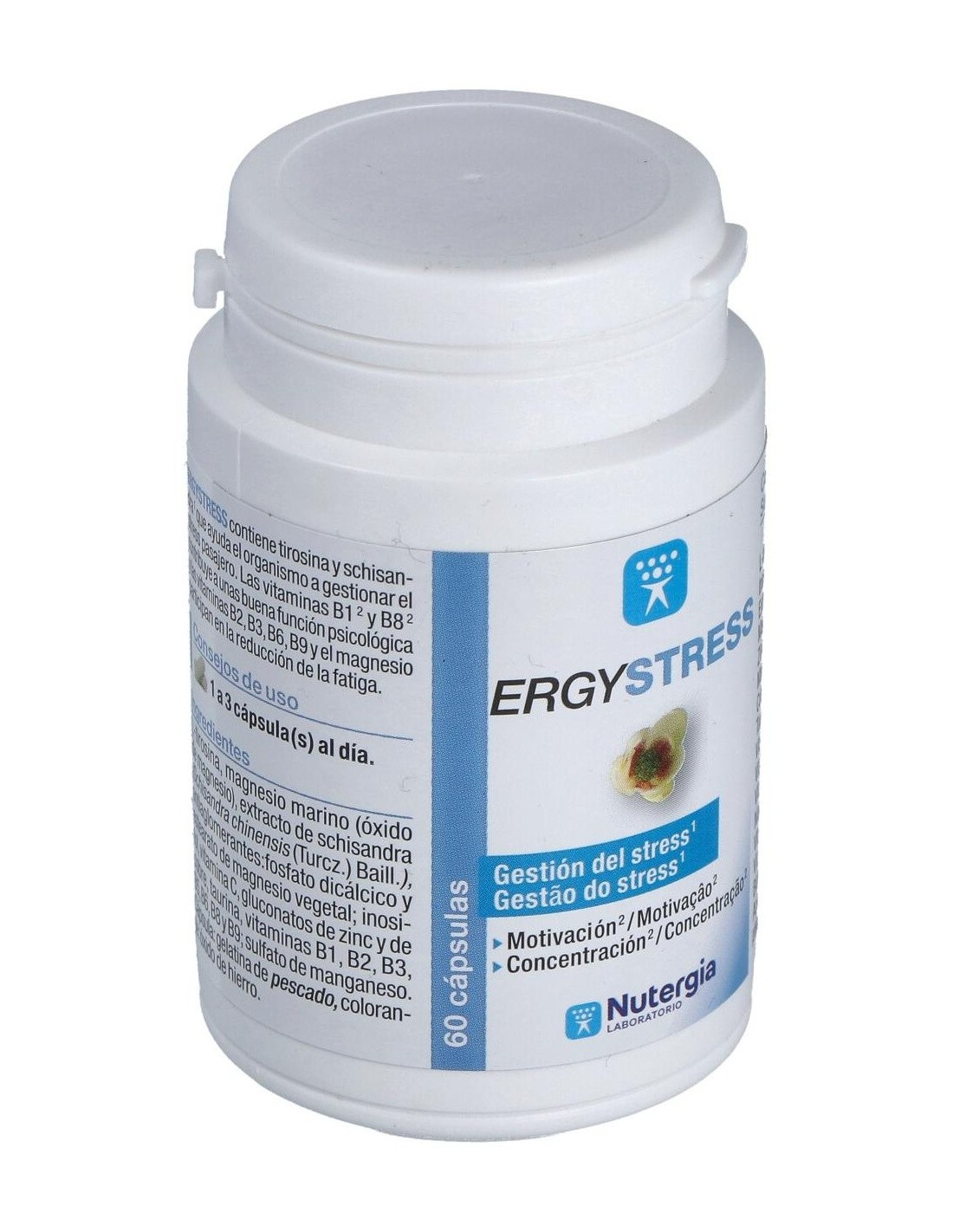 Ergystress 60Cap. de Nutergia es un complemento alimenticio diseñado para personas que buscan apoyar su bienestar diario en situaciones de tensión o estrés. Su formulación está orientada a contribuir al equilibrio emocional y a la relajación natural del organismo.