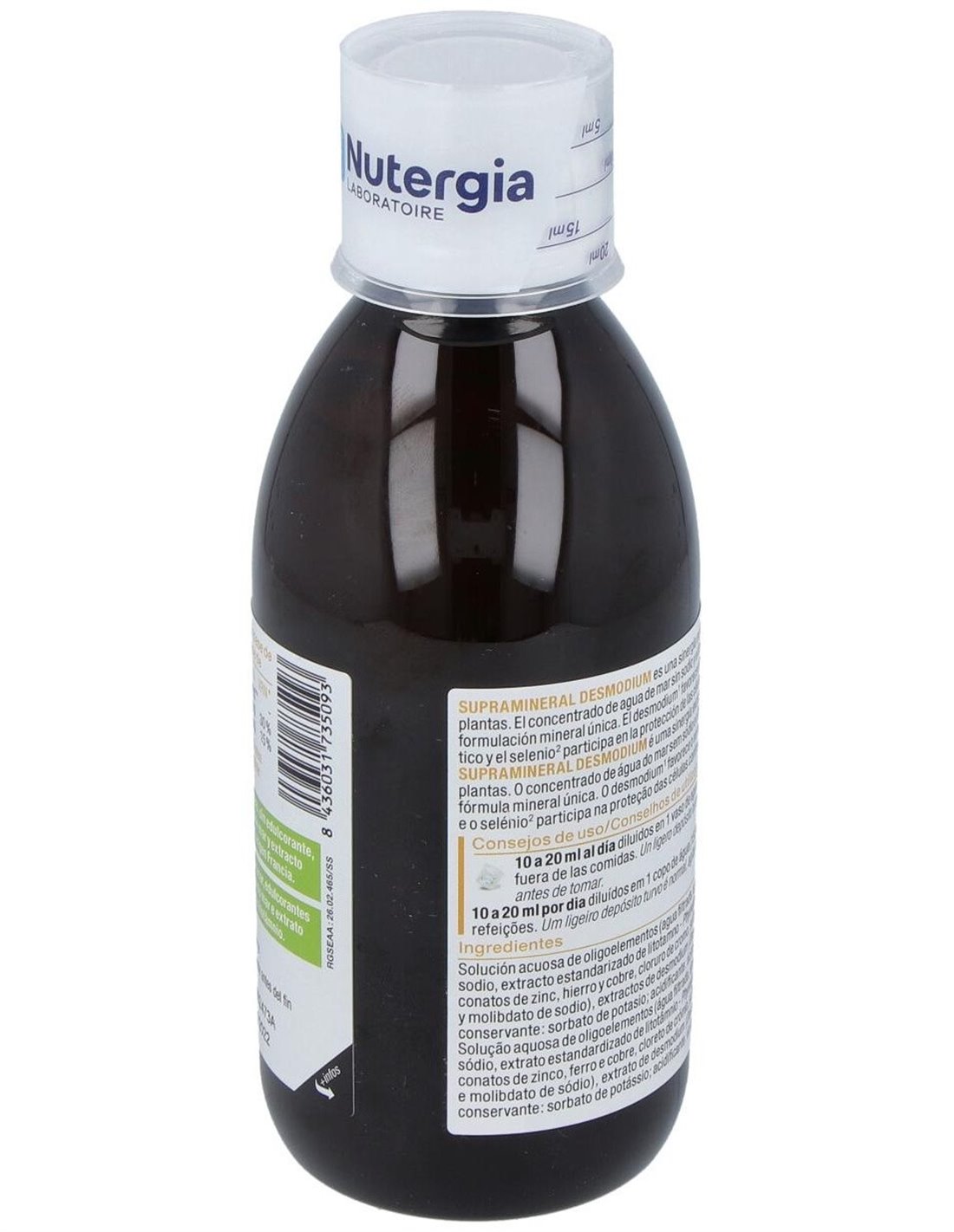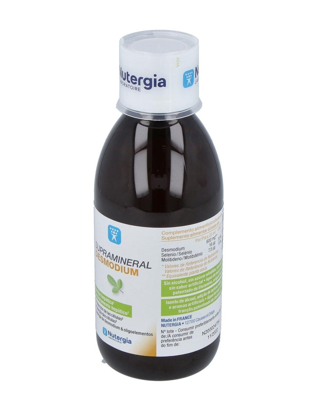 El Supramineral Desmodium 250Ml. de Nutergia es un complemento alimenticio para personas que buscan apoyar el bienestar hepático, formulado con extractos naturales que contribuyen a la función del hígado.