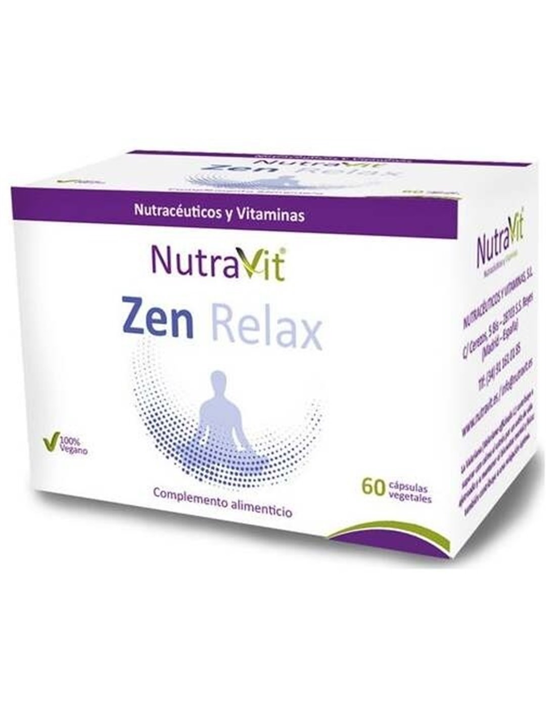 NUTRAVITComplemento alimenticio que en su formulación incorpora plantas medicinales, aminoácidos, vitaminas del grupo B, E y probióticos. Las vitaminas del grupo B contribuyen a mantener el sistema nervioso en condiciones normales. La toma de Zen Relax no genera somnolencia ni dependencia y puede tomarse durante largos períodos de tiempo.