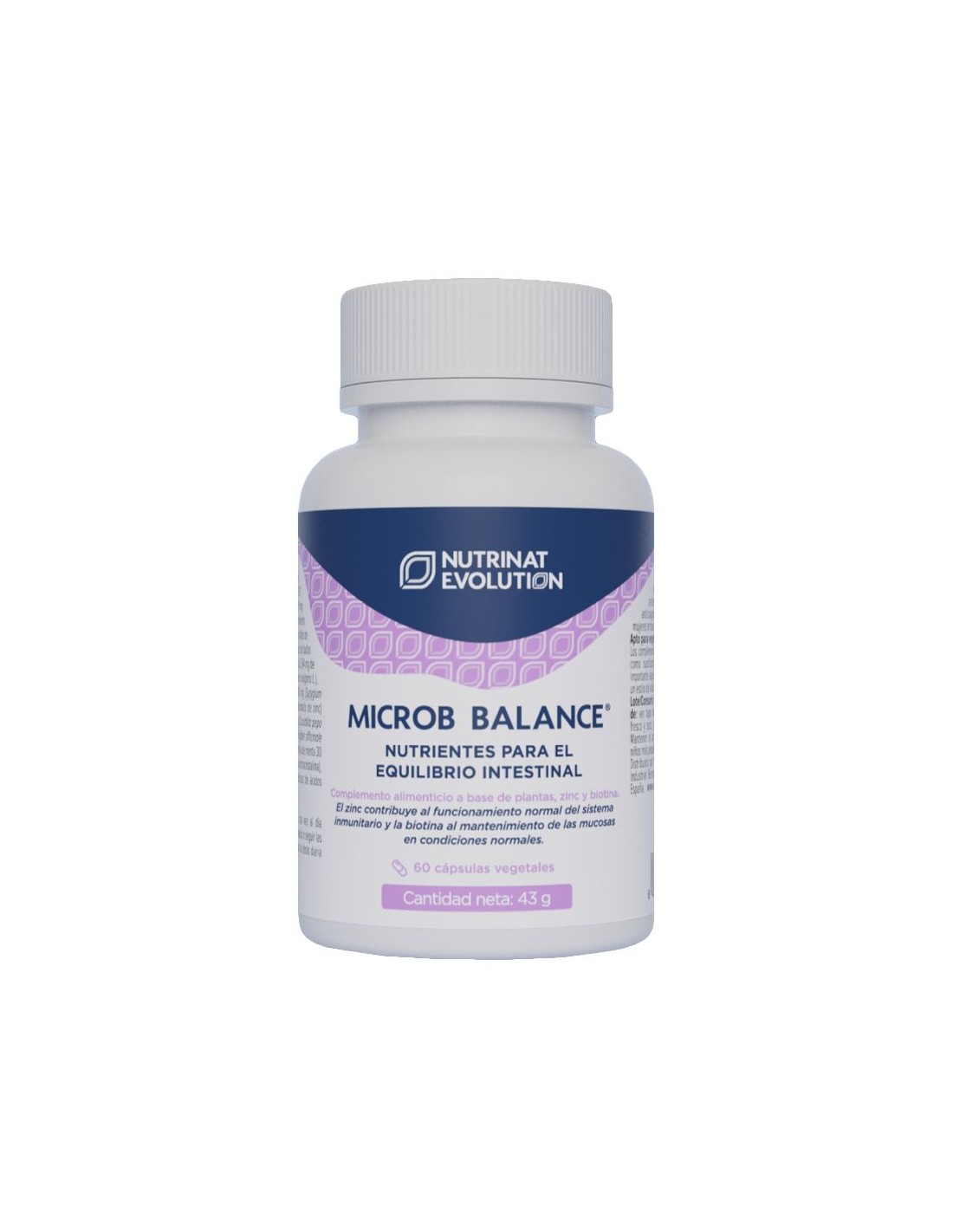 Microb Balance® de Nutrinat Evolution es un complemento alimen- ticio que incluye una mezcla de plantas, extractos vegetales, zinc y biotina, seleccio