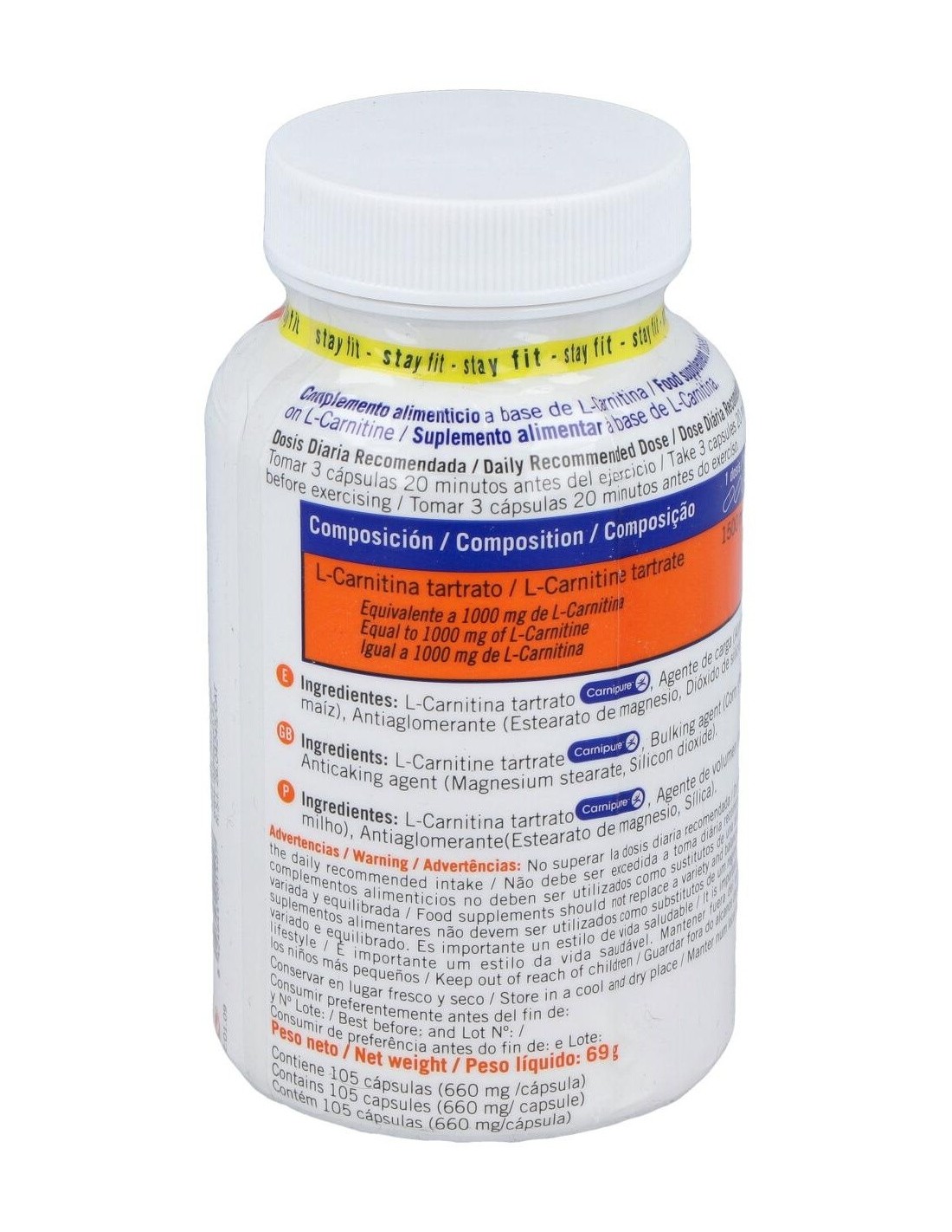 Complemento alimenticio elaborado a base de L-carnitina. Indicado para tomar junto con una dieta de control de peso. Ayuda a eliminar grasas del cuerpo. Para que la toma de la L-Carnitina sea efectiva esta deberá tomarse antes de iniciar el ejercicio físico. Ayuda a acelerar el metabolismo aeróbico de los hidratos de carbono. Funciona transportando los ácidos grasos a la mitocondria, en donde transformará la grasa en energía.
