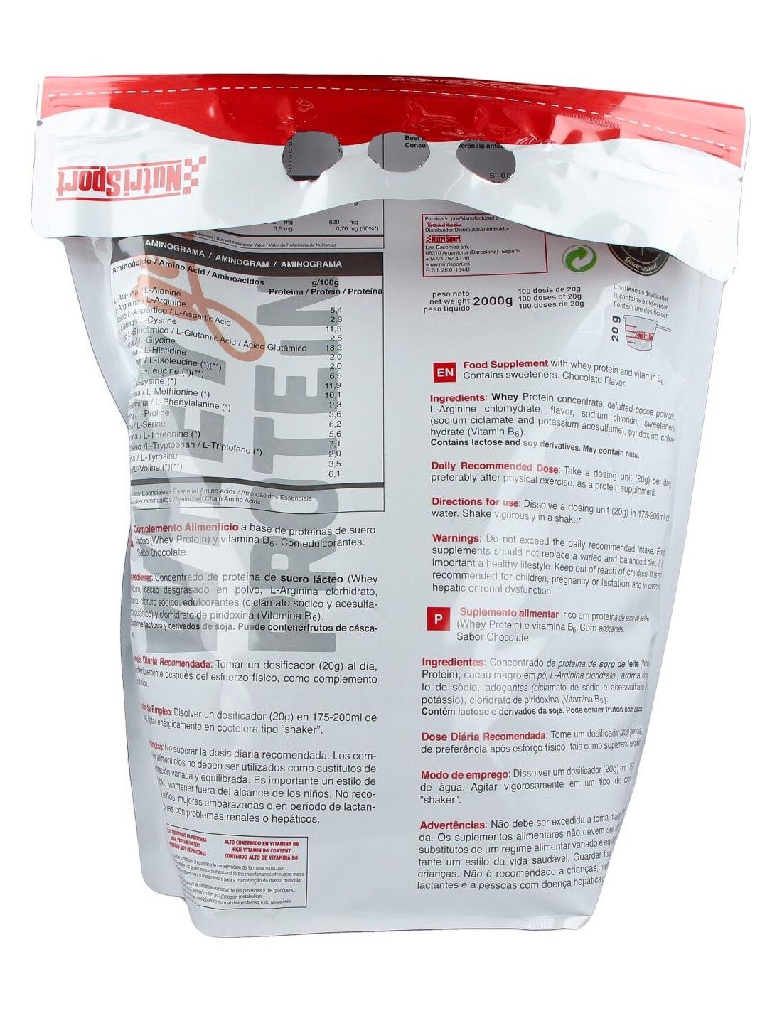 Whey Gold Protein Nutrisport + 2Kg. y 500 Gr. - Chocolate + 2000 gr. Chocolate es un suplemento nutricional para la vida del deportista a base de proteína de suero de leche, ayuda a aumentar la masa muscular. Recomendado para tomar después del entrenamiento. Aporta vitamina B6 y aminoácidos (BCAAs). Polvo sabor chocolate.