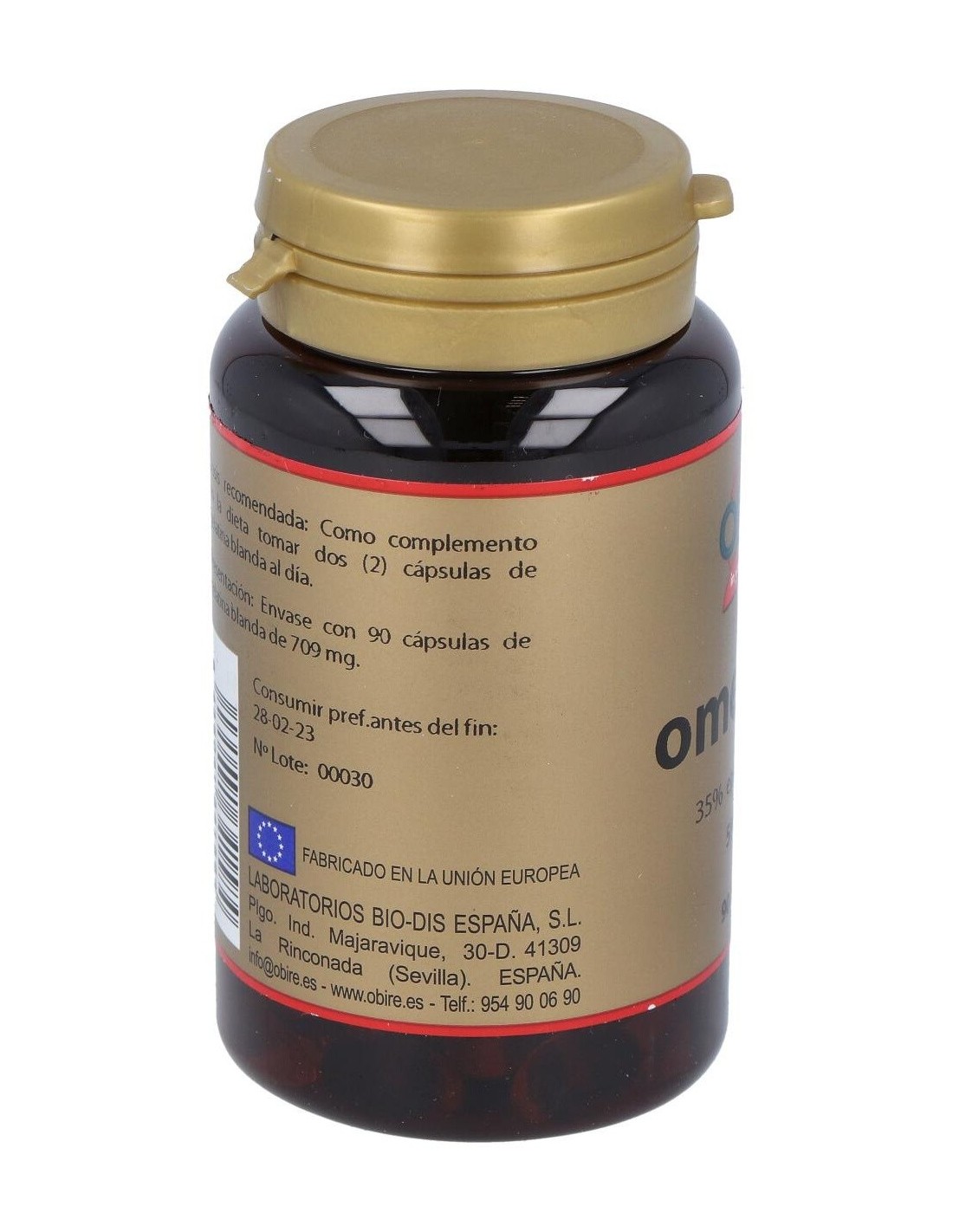 Aceite de pescado: 35% EPA, 25% DHA (500 mg), Vitamina E (2,5 mg)(20,83% VRN), Gelatina, Glicerina.