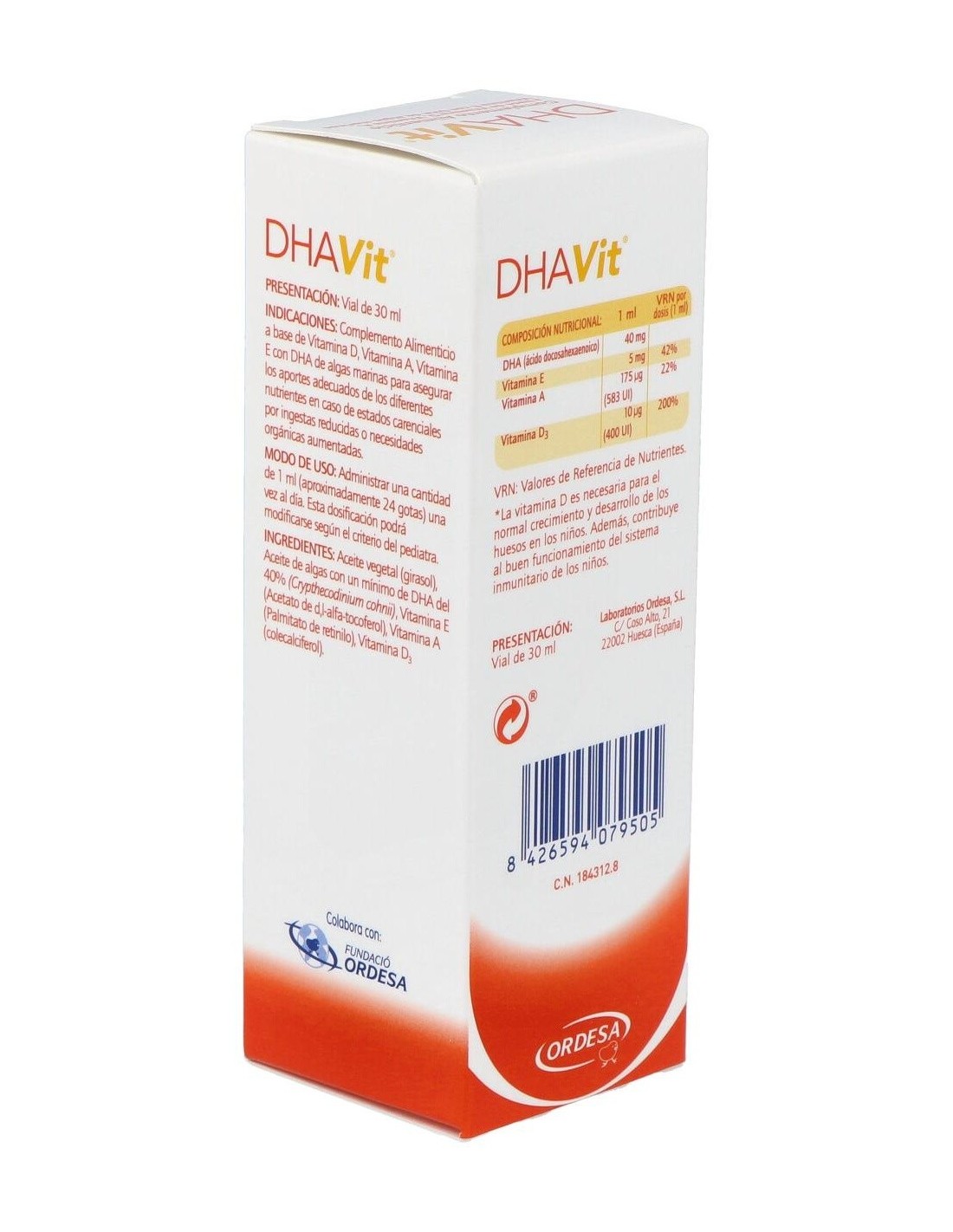 Complemento alimenticio a base de Vitamina D, Vitamina A, Vitamina E con DHA de algas marinas para asegurar un aporte adecuado de estos nutrientes en caso de estados carenciales por ingestas reducidas o necesidades orgánicas aumentadas. Presenta una dosificación y composición adaptadas a la edad pediátrica. Su excelente tolerancia y su agradable aroma y sabor facilitan su aceptación por parte de los lactantes y niños de corta edad. Apto para dietas sin gluten y sin leche.