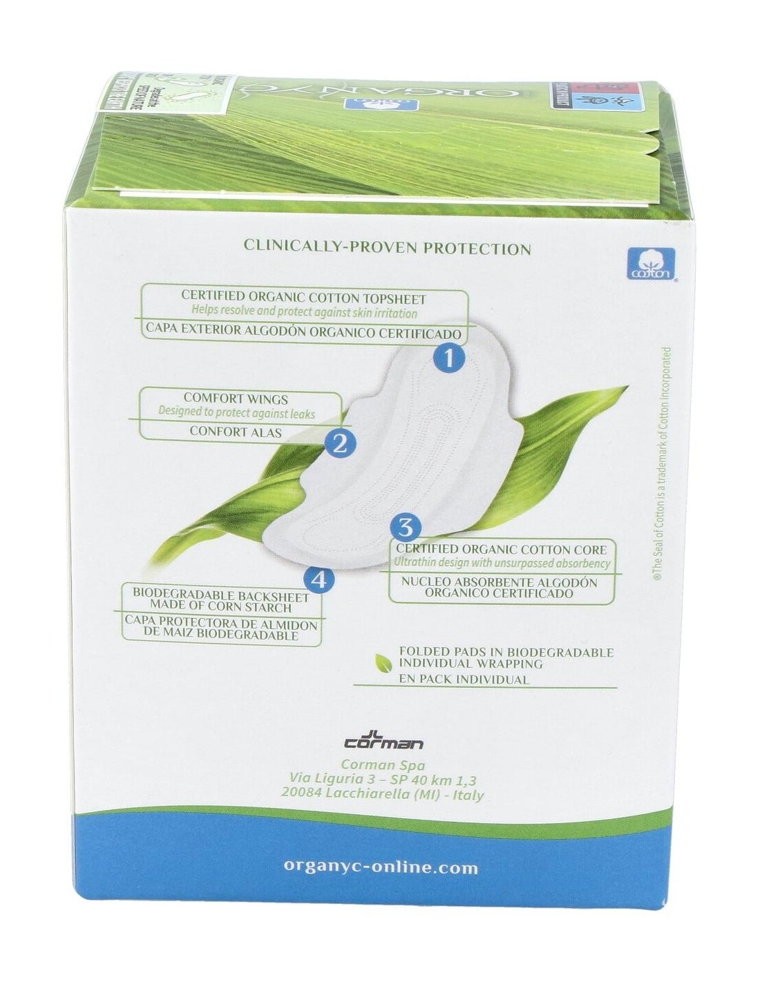 Compresas dia c/alas (bolsa ind) 100% algodón orgánico, 10ud de Organyc