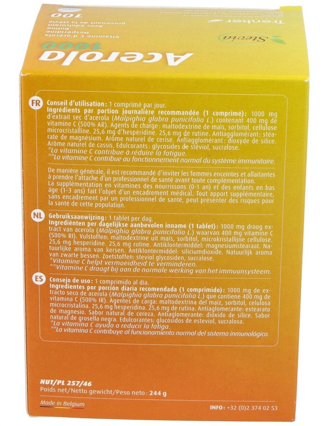 Zumo Acerola deshidratado (Malpighia punicifolia L.) 1.000 mg (conteniendo 400 mg vitamina C completa).