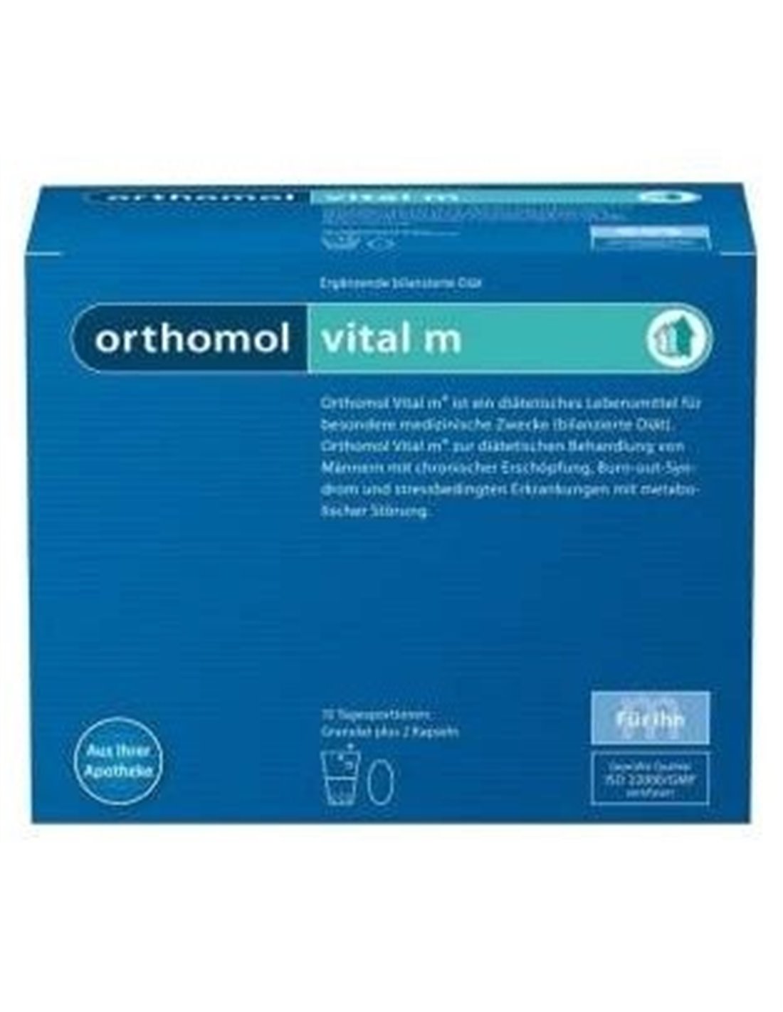 Orthomol vital M contiene una combinación específica de micronutrientes importantes para el sistema nervioso y el metabolismo energético que ayudan a la reducción del cansancio y la fatiga, pensados para el hombre, como: vitamina C, vitamina B2, vitamina B6, vitamina B12, ácido fólico, yodo, manganeso, niacina y biotina, entre otros, que contribuyen a la reducción del cansancio y la fatiga y a la protección del estrés oxidativo.Los ácidos grasos omega 3 EPA y DHA contribuyen a la función normal del corazón. El efecto positivo se establece con una ingesta diaria de 250 mg de EPA y DHA.Composición activa por 1 sobre, 2 cápsulas y 1 comprimido: