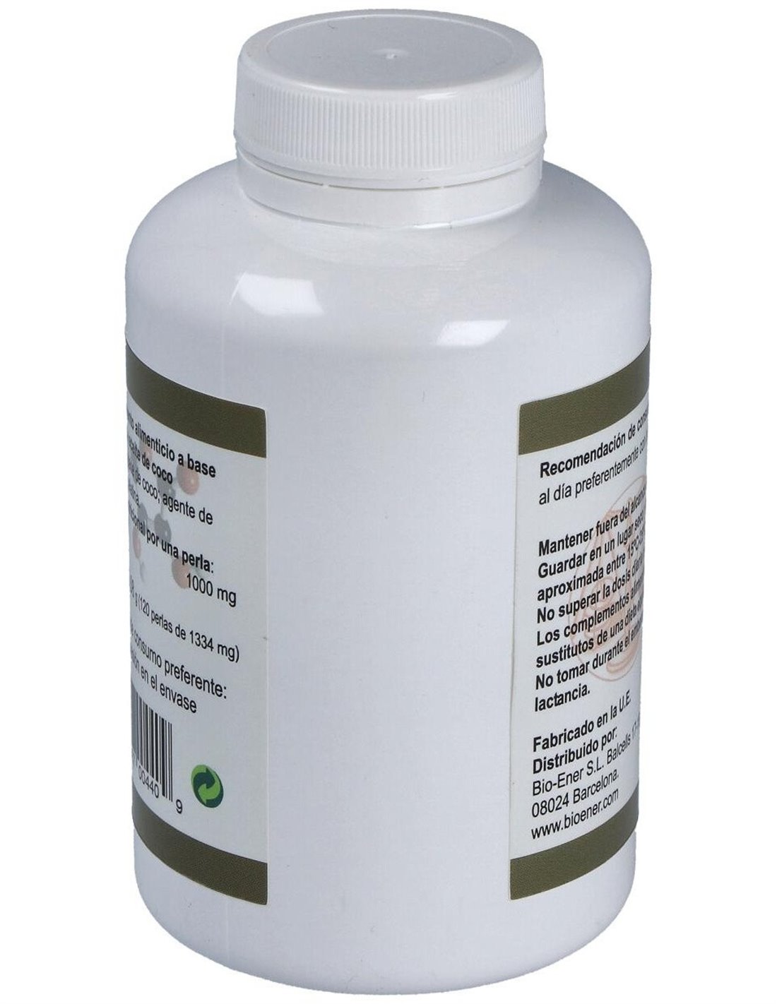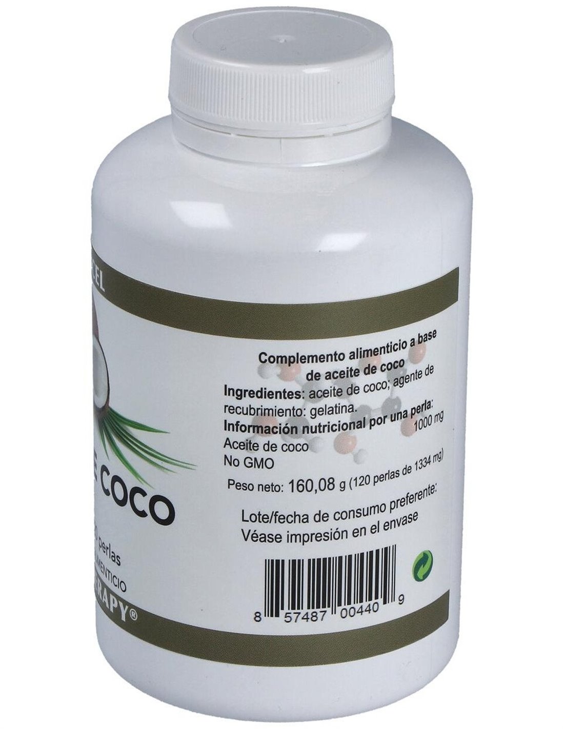 Complemento alimenticio a base de aceite de coco puro virgen extraído en frío. Este aceite se caracteriza por contener el 60% de sus grasas en forma de triglicéridos de cadena media, los cuales tienen unas propiedades únicas en su metabolismo y distribución.