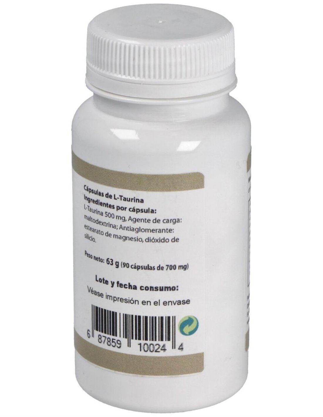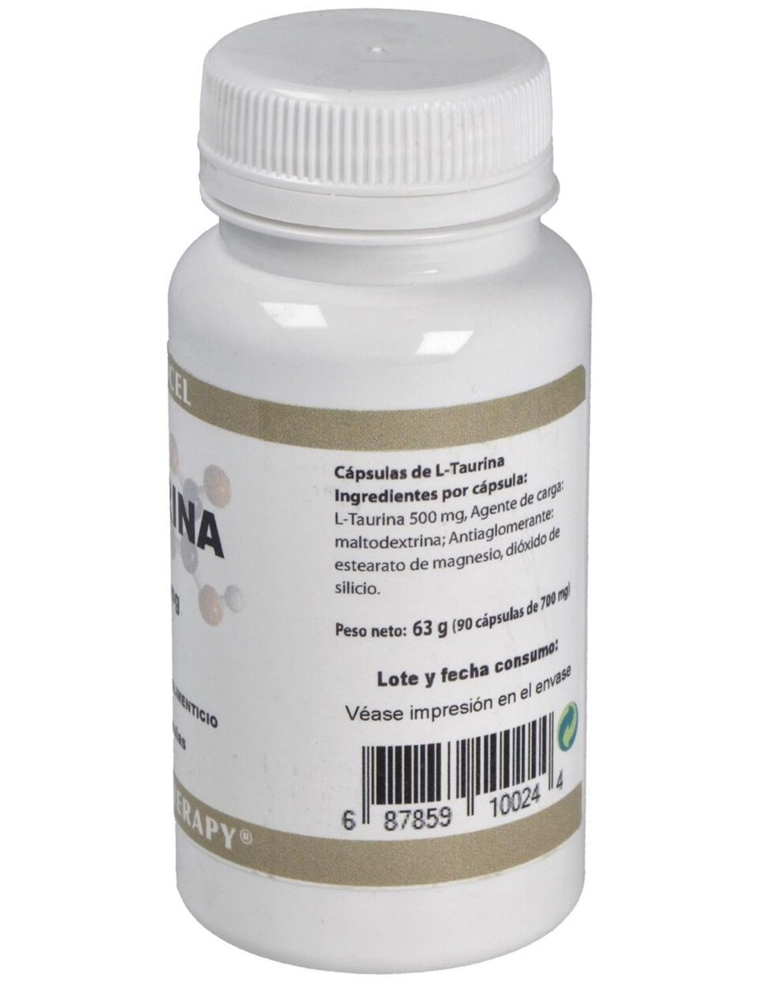 Por 1 cápsula: L-Taurina.......500 mg Agente de carga: maltodextrina. Antiaglomerante: estearato de magnesio, dióxido de silicio.