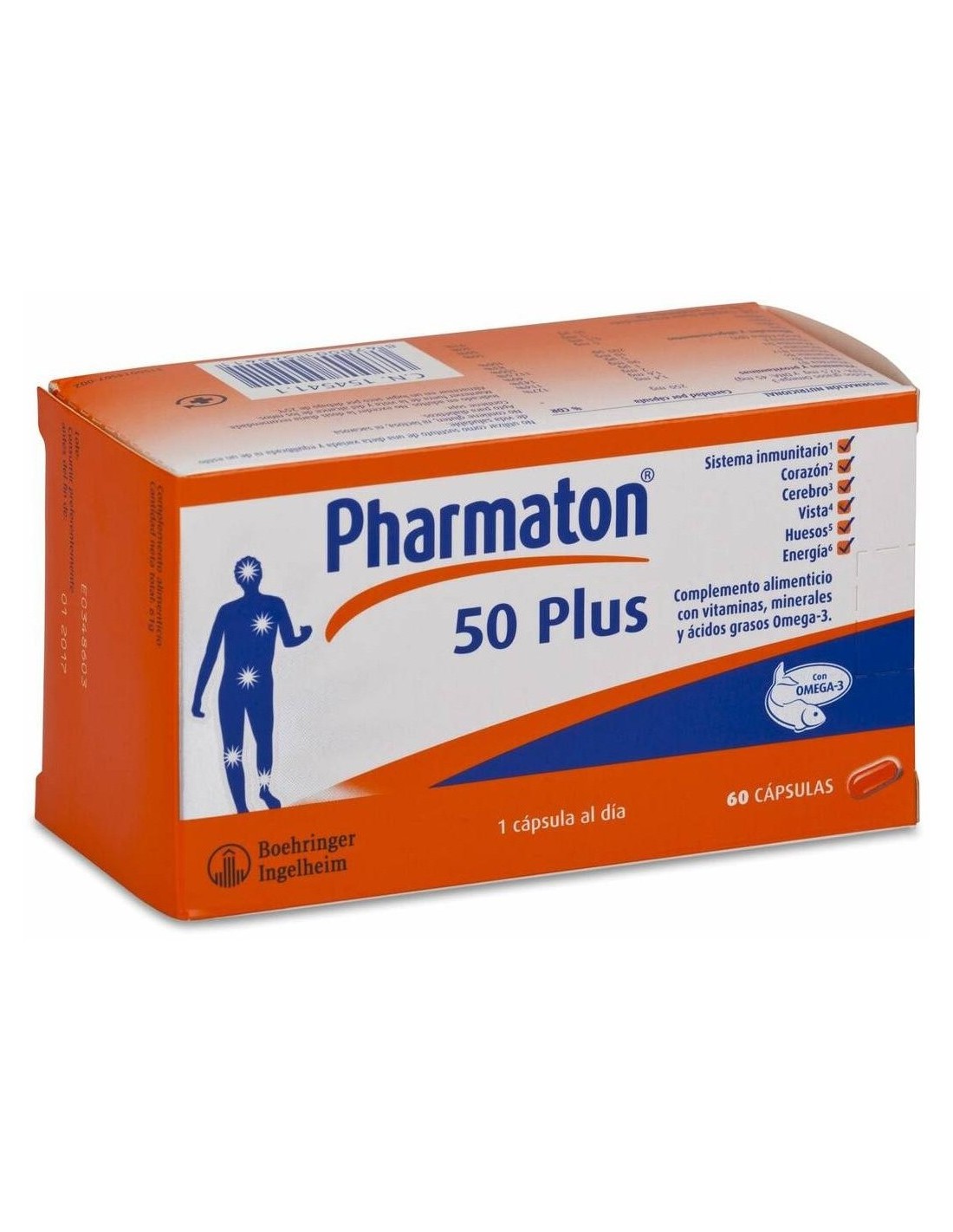 Pharmaton 50 Plus 60 cápsulas blandas es un multivitamínico con minerales y omega-3 que aporta el extra de energía necesaria para seguir manteniendo el mismo ritmo de vida, sobre todo, a partir de los 50.