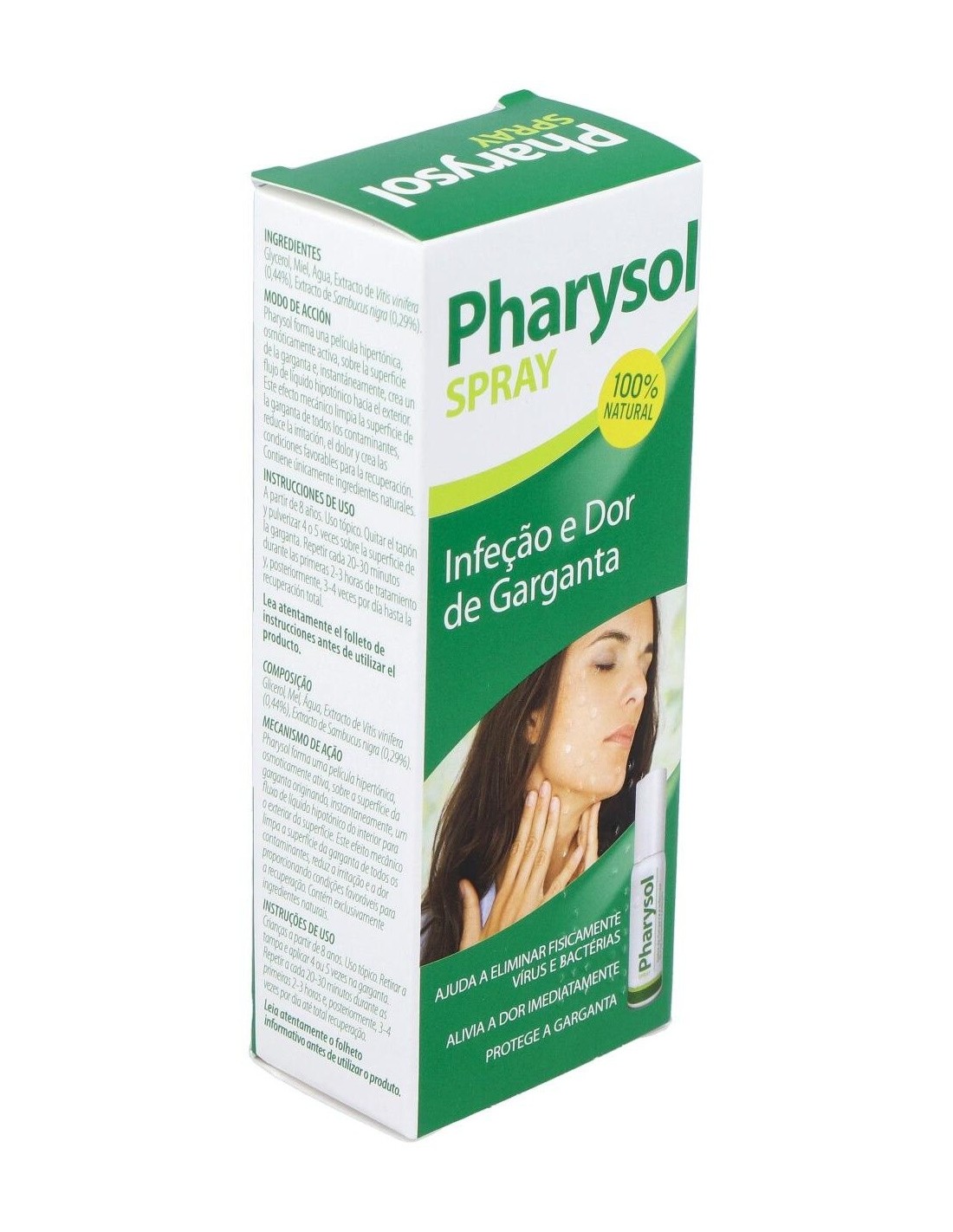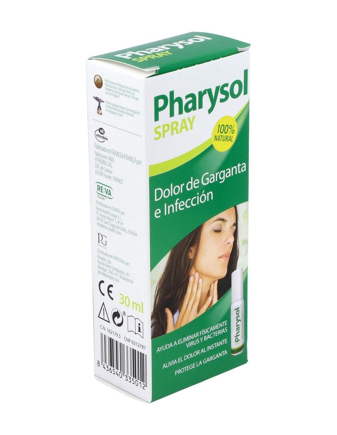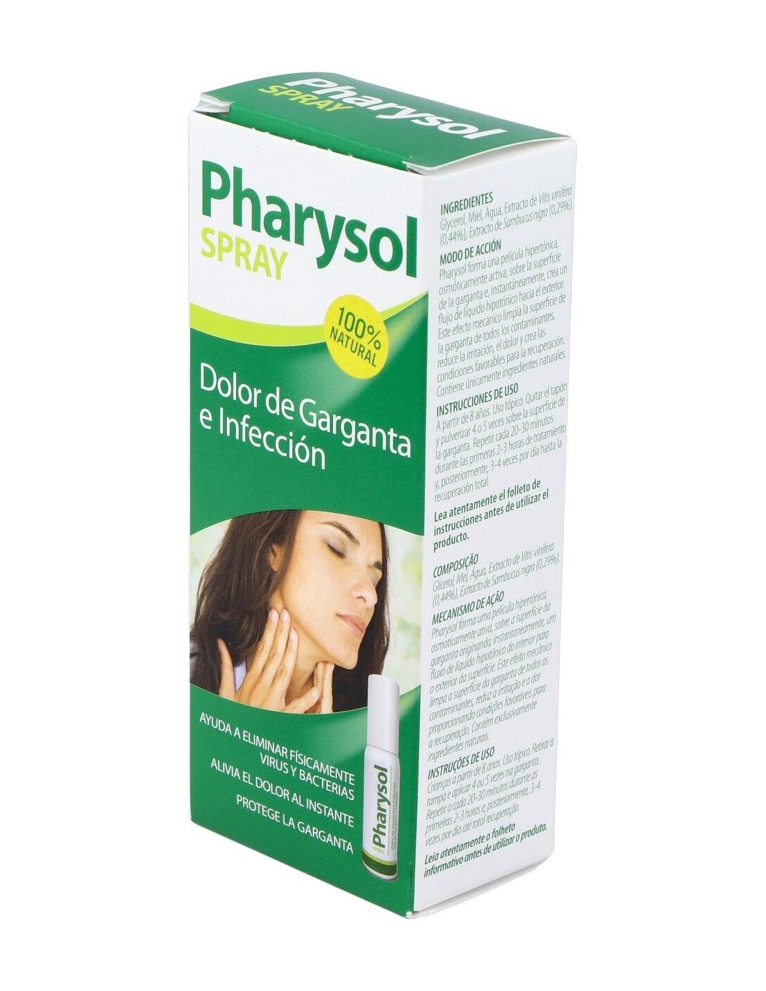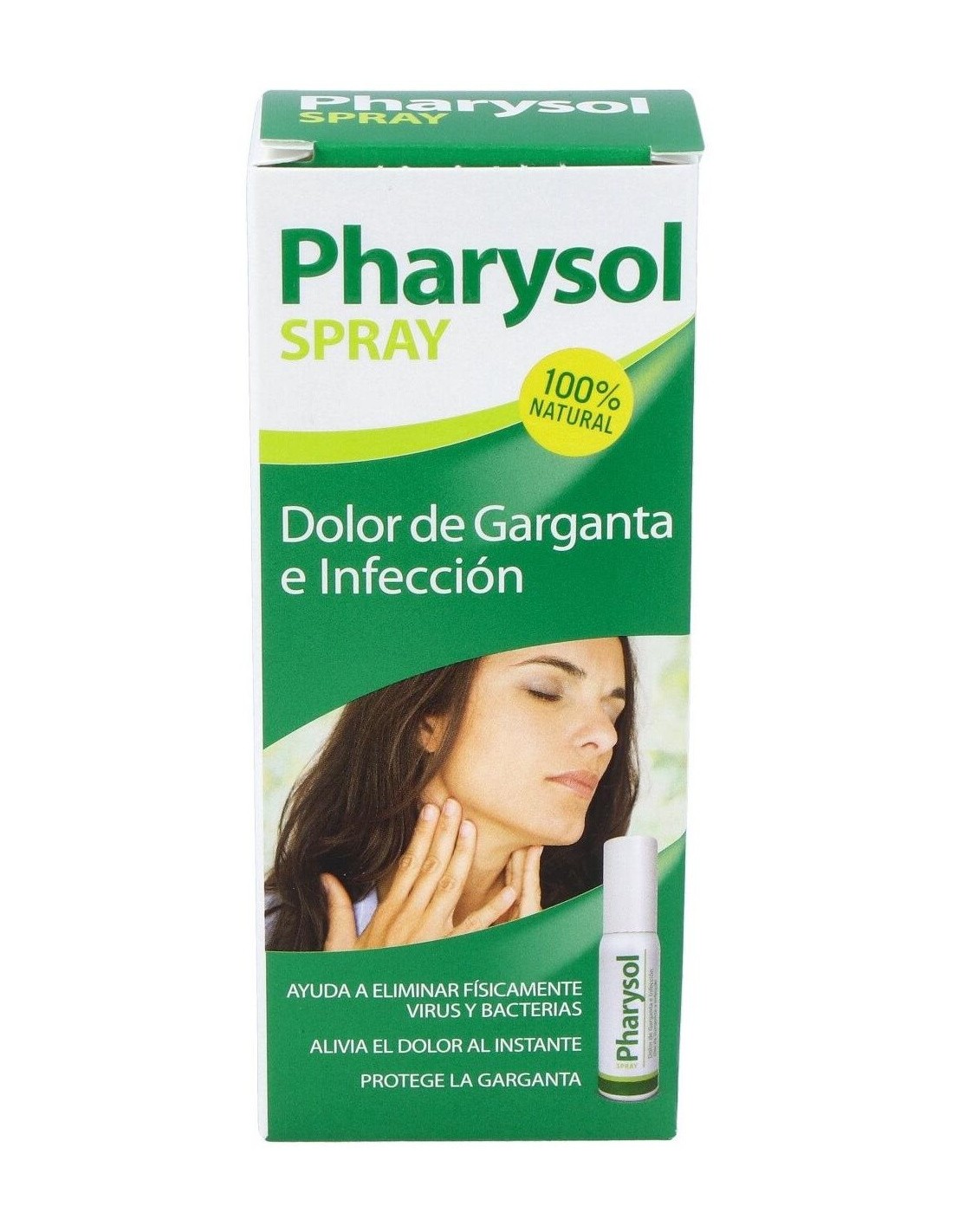 Pharysol | Pharysol spray 30mlPharysol spray ofrece un tratamiento natural para molestias e infecciones de garganta, mejorando su bienestar y aliviando los síntomas del constipado cuando la afectan. Está compuesto por sustancias que actúan sobre los virus, estimulando su expulsión y mejorando la higiene de la garganta.
