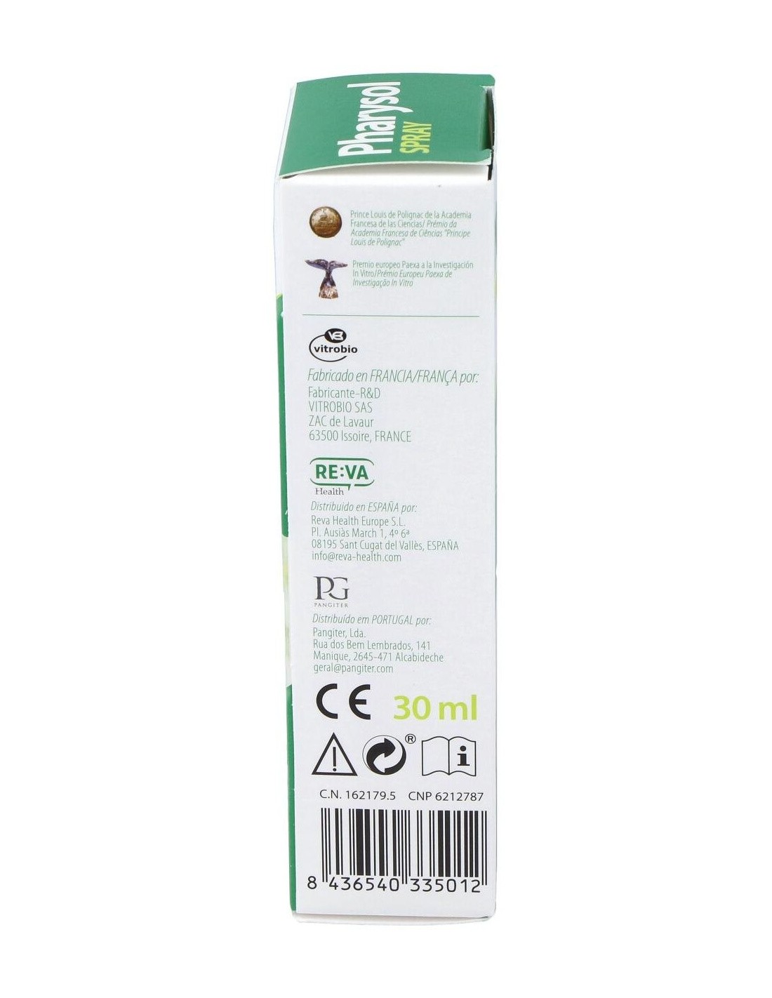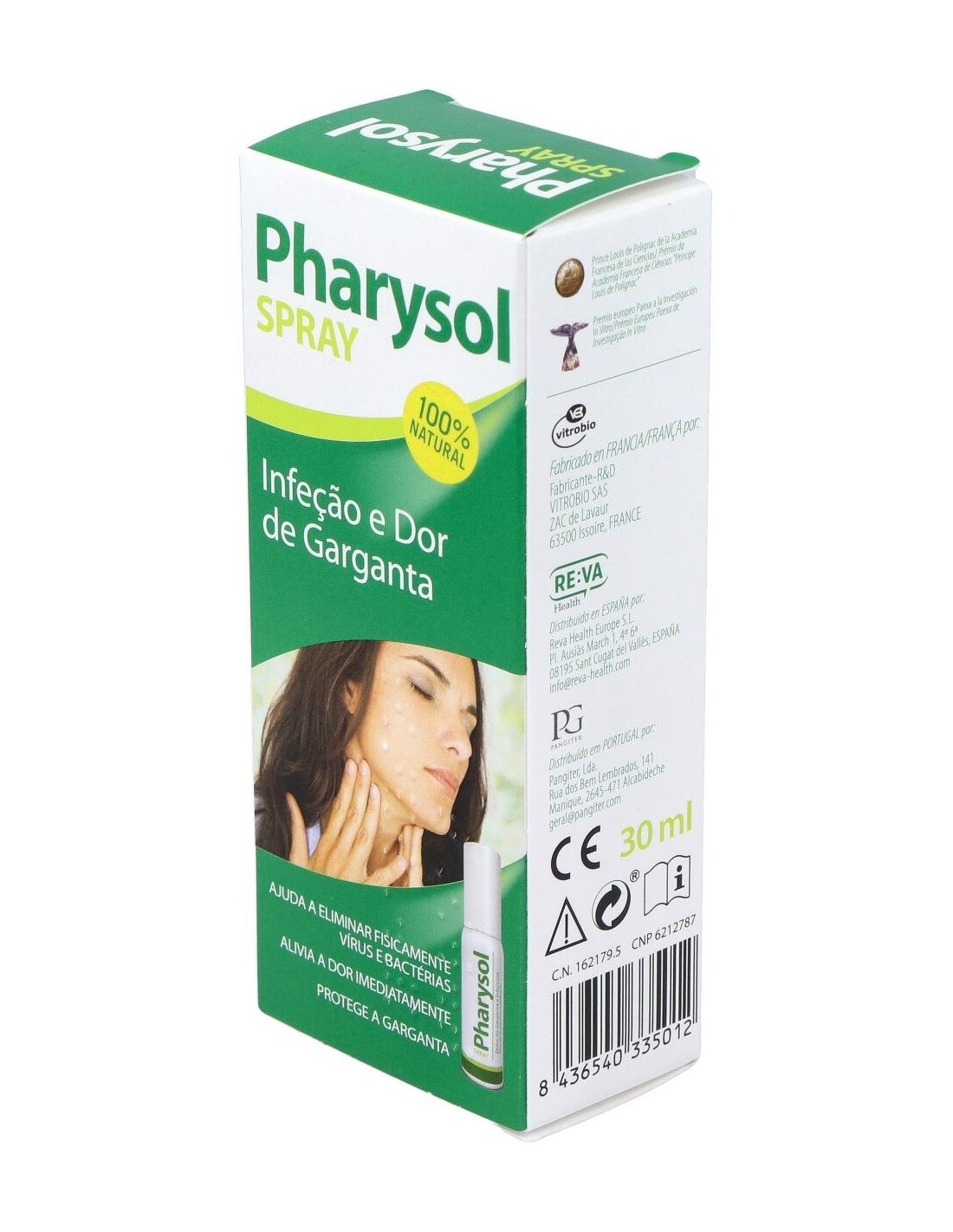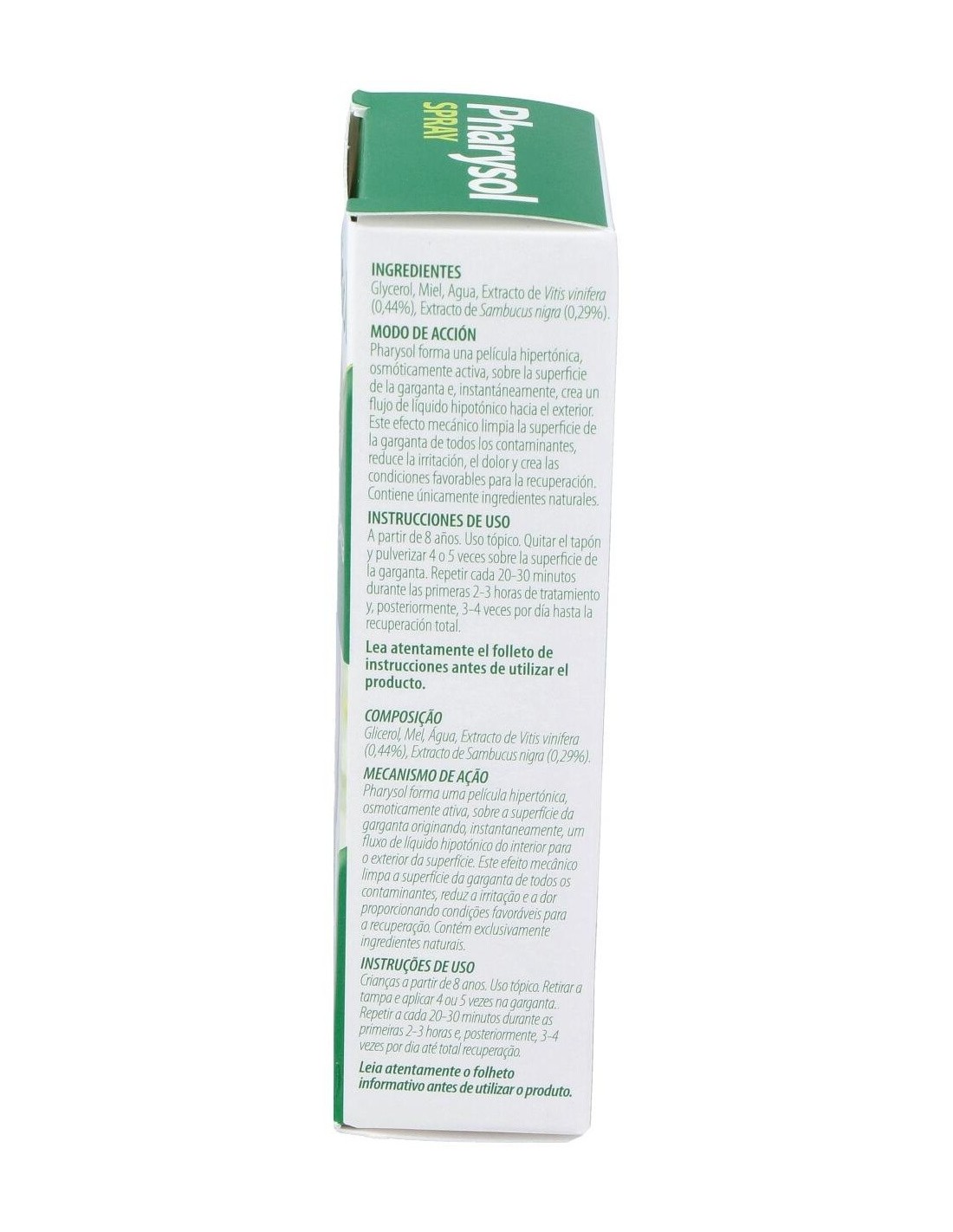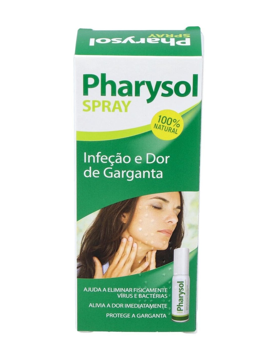 Pharysol | Pharysol spray 30mlPharysol spray ofrece un tratamiento natural para molestias e infecciones de garganta, mejorando su bienestar y aliviando los síntomas del constipado cuando la afectan. Está compuesto por sustancias que actúan sobre los virus, estimulando su expulsión y mejorando la higiene de la garganta.