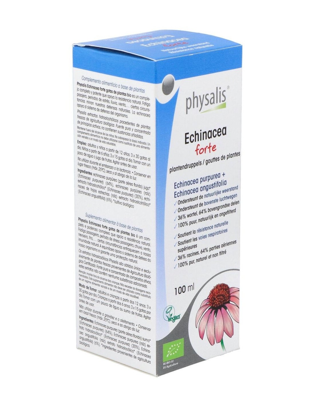 La Tintura Echinacea de Physalis es un suplemento natural para personas que buscan apoyar su bienestar inmunológico, elaborado con extracto concentrado de echinacea para facilitar su consumo diario.