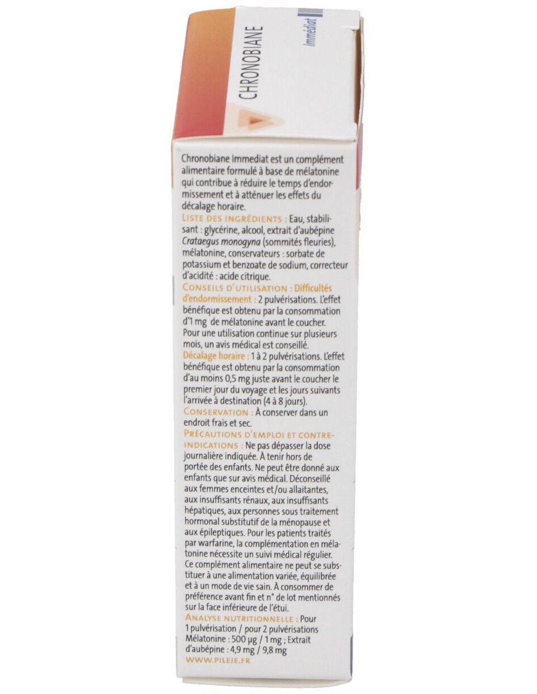 CHRONOBIANE | Chronobiane Spray Inmediato Fl20MlModo de empleo? Revisar las instrucciones del complemento alimenticio.? Revisar las contraindicaciones de este producto antes de tomarlo.