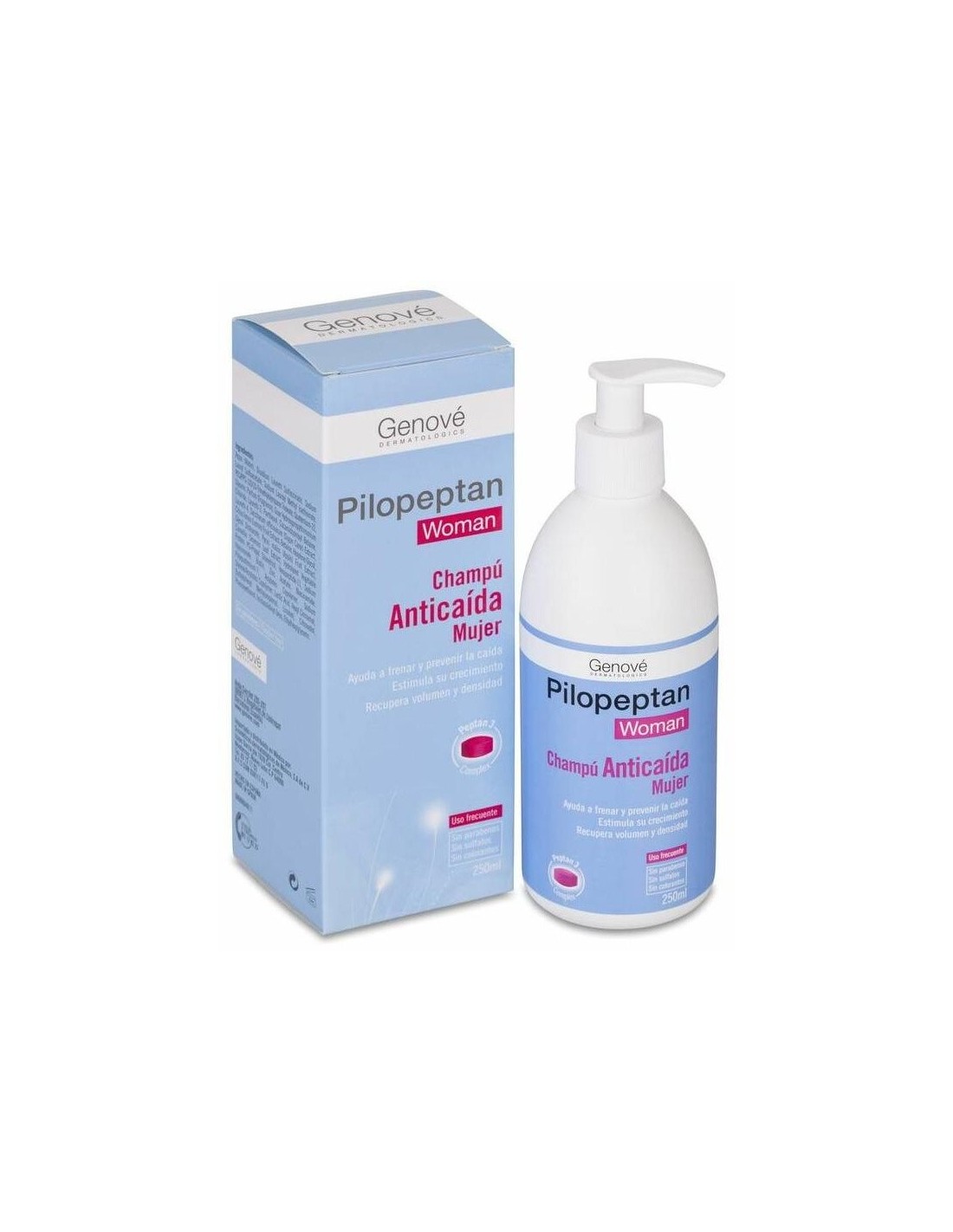 genove | Genové Pilopeptan Woman champú anticaída 250ml¿Tu cabello muestra signos evidentes de fragilidad y debilidad, especialmente cuando lo cepillas cada día? Si es así no esperes más y prueba el tratamiento que ofrece la marca Genové, con el que podrás recuperar la salud y fortaleza de tu melena.Genové Pilopeptan Woman champú anticaída es una suave loción limpiadora que consigue revitalizar la raíz, haciendo que tu pelo nazca mucho más saludable y reforzado.