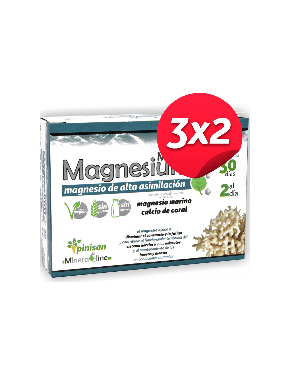 Características y Beneficios del Pack 3x2 Mineraline Magnesium, 60 Caps. de Pinisan