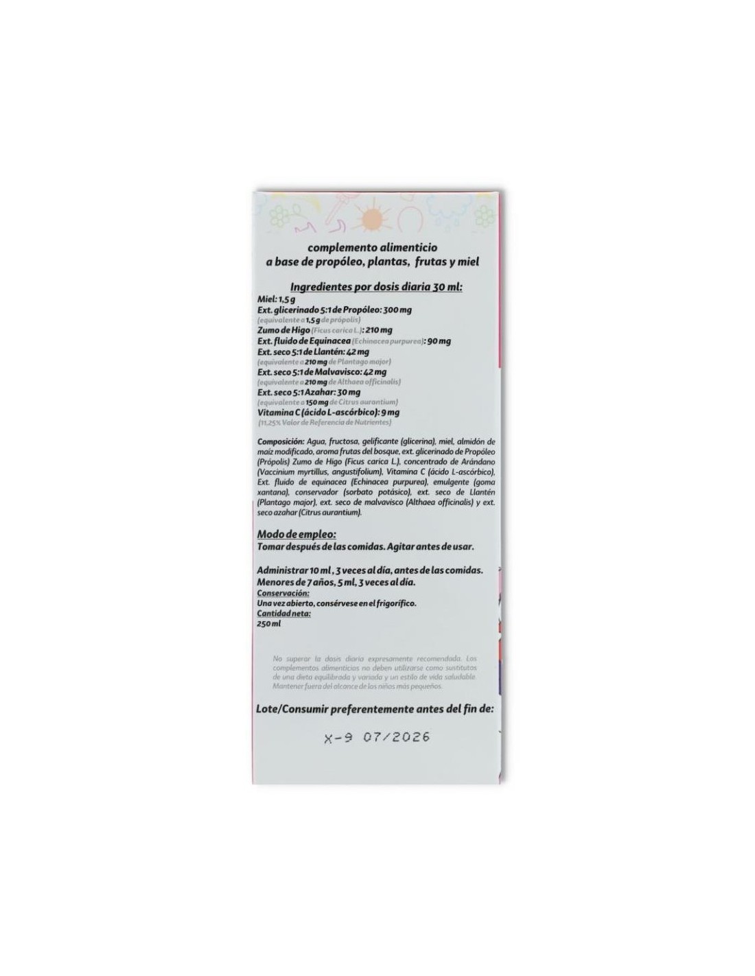 Adios Pañuelos de Pinisan ha sido especialmente formulado pensando en los más pequeños. Su composición contiene plantas y otros productos que producen las abejas, como la miel y el propóleo. Además de su delicioso sabor a frutas del bosque, hace olvidarse de los pañuelos, sea mucho más divertido para los peques.Composición activa por 15 ml: