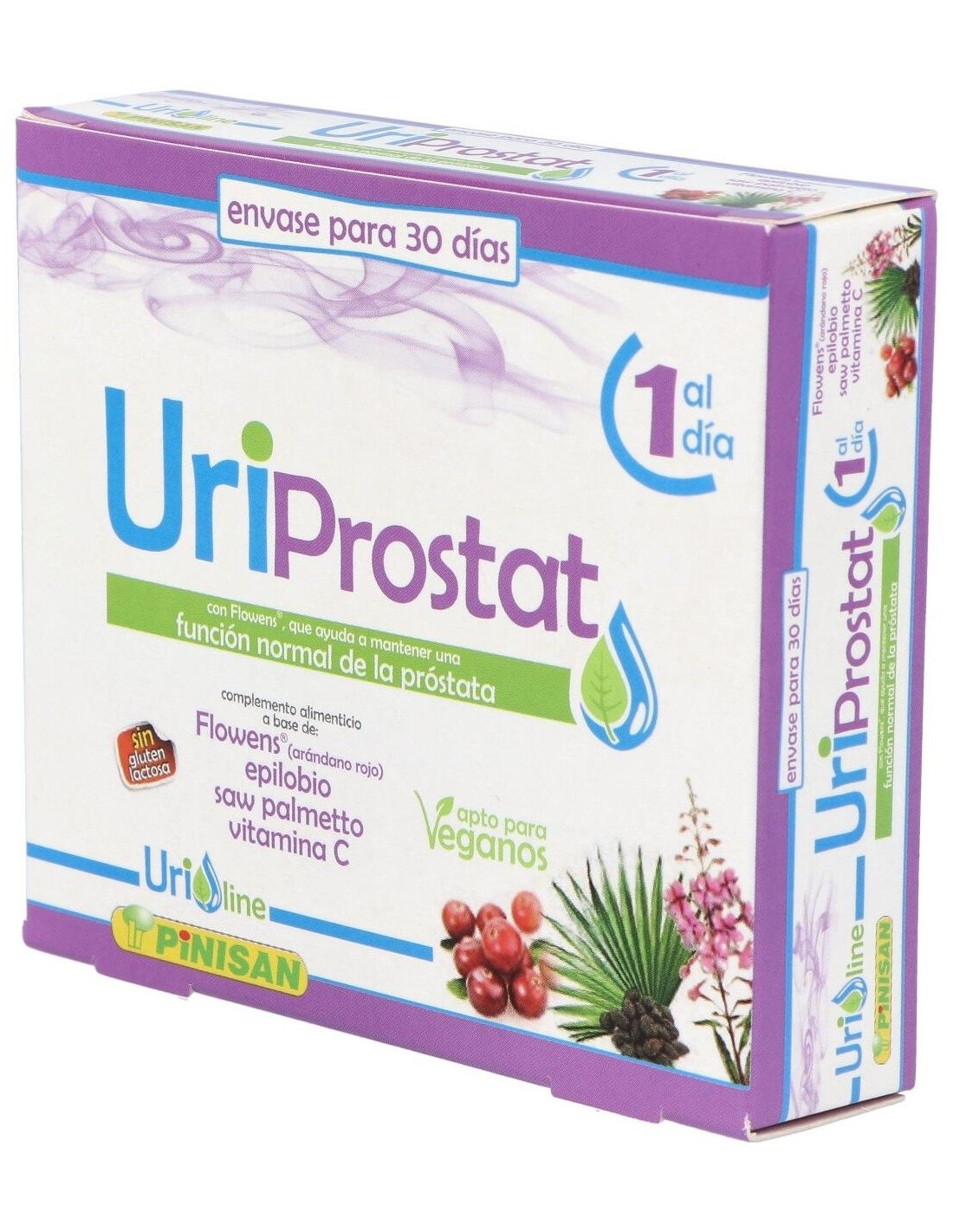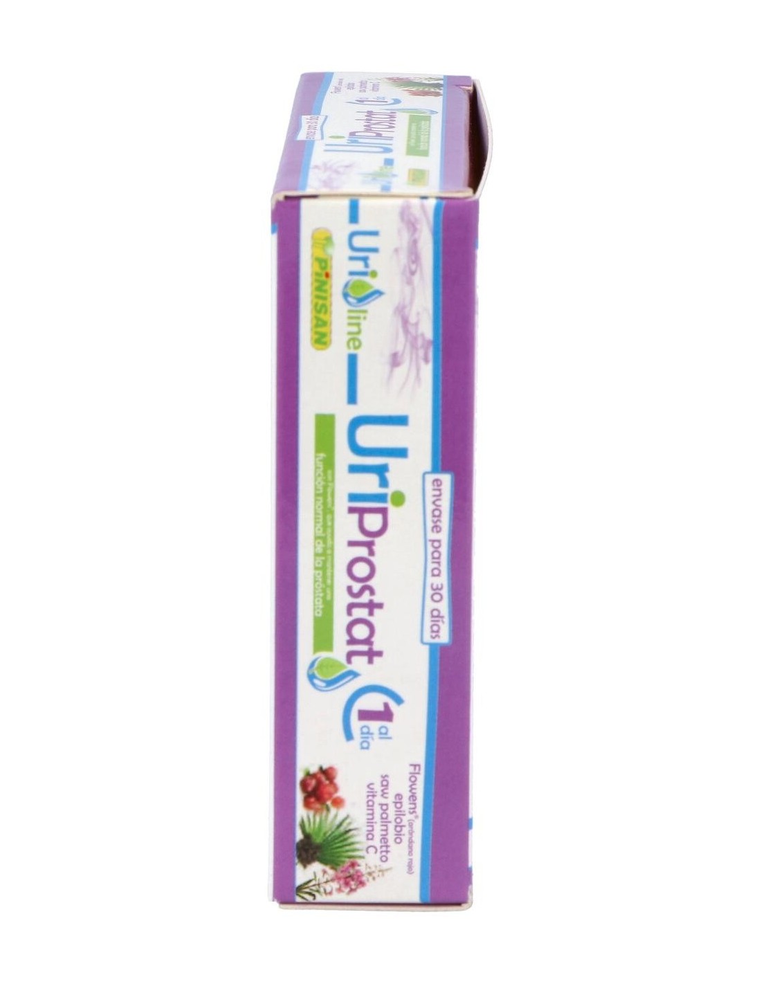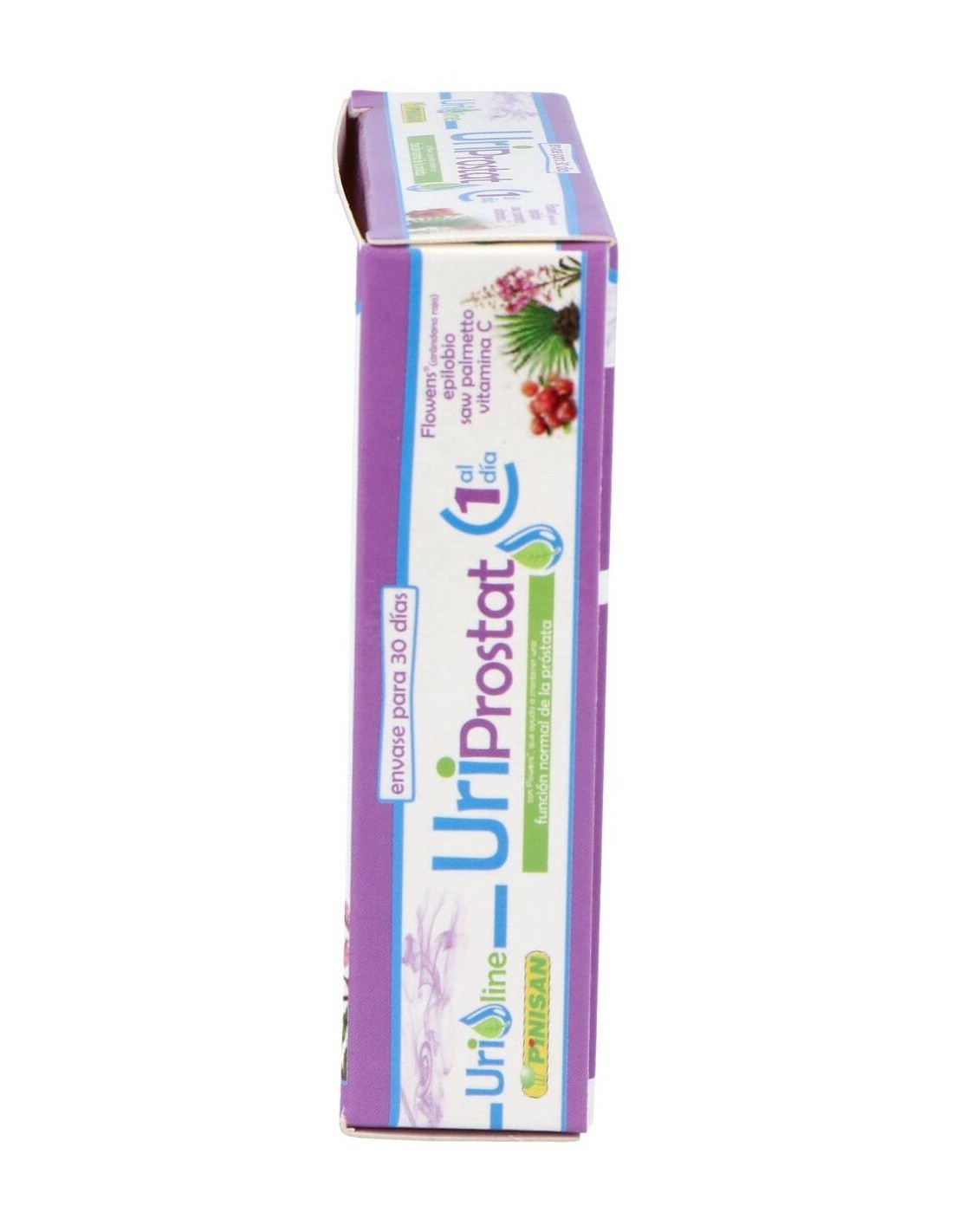 Propiedades de los principios activos:- Flowens®: Es un extracto que se obtiene del fruto entero del arándano rojo americano (Vaccinium macrocarpon L.) ofreciendo los beneficios del espectro completo del fruto. Es el único extracto de arándano que ha demostrado eficacia con estudios contrastados en la mejora de los síntomas asociados a las afecciones del tracto urinario en hombres, así como una mejora en todos los marcadores de flujo (uroflujometría), volumen de orina eliminada, volumen residual postvaciamiento, flujo urinario durante la micción. Los síntomas de mejora incluyen a los producidos tanto por hiperactividad de la vejiga (frecuencia, nicturia, urgencia miccional, incontinencia) como por hipoactividad de ésta (intermitencia miccional, flujo débil y retención urinaria). - Epilobio: Es una planta que suele crecer en casi cualquier terreno mientras tenga suficiente humedad, es de la familia de las Enoteráceas y suele encontrarse con más facilidad en montañas europeas o en Asia septentrional. El Epilobio llega a medir 2 metros de altura y puede reproducirse fácilmente debido a su masiva producción de semillas, por lo que llega a abarcar grandes superficies de terreno y suele considerarse como hierba mala. Contiene una importante cantidad de compuestos polifenólicos, como los taninos, y compuestos polisacáridos, como la pectina y el mucílago. El Epilobio ha demostrado ser un remedio beneficioso para los problemas de próstata debido a que contiene sustancias como los elagitaninos eonoteína A y B que inhiben la actividad de dos enzimas (5-alfa-reductasa y aromatasa) las cuales están directamente involucradas en la HPB (Hiperplasia prostática benigna). El epilobio posee una potente acción antiinflamatoria y también tiene efectos inhibidores de la síntesis de prostaglandinas. Estas propiedades del epilobio logran reducir el agrandamiento de la próstata, disminuir la inflamación y con ello la desaparición gradual de las molestias y los problemas para orinar. - Saw Palmetto: También llamado Sabal o Palma Enana Americana es una planta que crece en las regiones costeras del sur de los EE.UU. De su fruto se obtiene un extracto lipídico, en el que predominan los ácidos grasos, los fitoesteroles, y, en menor medida, taninos, betacarotenos y flavonoides. Los usos tradicionales de estas bayas son para problemas de retención de líquidos, problemas relacionados con la próstata (prostatitis o hiperplasia prostática benigna), alopecia androgénica, impotencia masculina, falta de líbido y cistitis. De todas estas propiedades, los estudios han demostrado que su consumo habitual determinó una menor incidencia de problemas relacionados con la inflamación de la vejiga y con prostatitis, fundamentalmente en lo que se refiere a la necesidad urgente de orinar, el escozor en la micción, la sensación de no haber vaciado completamente la vejiga y otros síntomas que se presenta en este tipo de afección. - Vitamina C: Es una vitamina soluble en agua que se encuentra en frutas y verduras. La vitamina C tiene propiedades antioxidantes y estimulante del sistema inmunológico, por lo tanto puede ayudar al organismo a combatir infecciones, incluyendo infecciones de la vejiga, ya que dificulta la colonización de bacterias patógenas en esta. Es una vitamina que no podemos producir en nuestro organismo y es necesaria aportarla a través de la dieta. Ingredientes activos por cápsula: