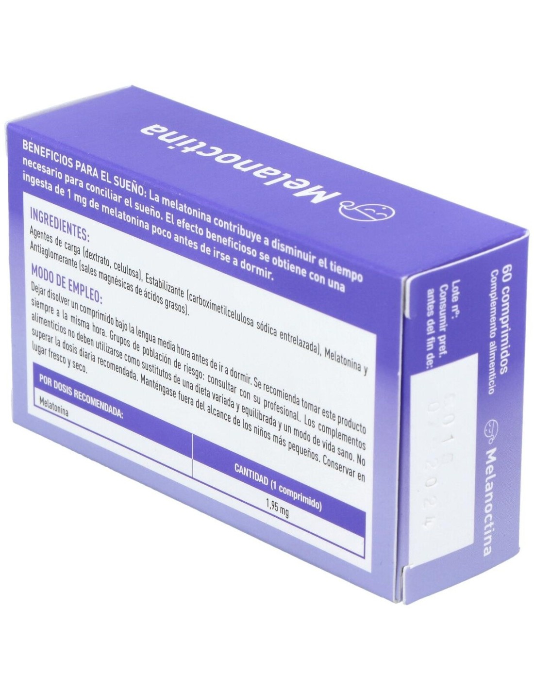 Uno de los remedio naturales más popularescontra el insomnio en la actualidad es la melatonina, una hormona producida en la glándula pineal que se encarga, entre otras funciones, de regular el sueño. El paso de los años, el estrés y la ansiedad, una mala alimentación y desajustes en los horarios del sueño hacen disminuir los niveles de melatonina en nuestro organismo. Cuando esto sucede nuestro reloj biológico se desajusta y aparece una importante dificultad para conciliar el sueño y que este sea prolongado durante la noche. Una dosis de 1 mg de melatonina una hora antes de acostarse es suficiente para inducir al sueño de forma natural y que este sea más duradero y de mayor calidad, poniendo remedio al insomnio ocasional y sus consecuencias. También es muy útil para aquellas personas que trabajan a turnos y ven modificados semanalmente sus horarios de sueño y ha demostrado una notable eficacia en la adaptación del organismo a diferentes usos horarios, el temido jet-lag. Composición activa por comprimido:1,95 mg de melatonina.Ingredientes:Agentes de carga (dextrato, celulosa), Estabilizante (carboximetilcelulosa sódica entrelazada), Melatonina y Antiaglomerante (sales magnésicas de ácidos grasos). Modo de empleo:Dejar disolver un comprimido bajo la lengua media hora antes de ir a dormir. Se recomienda tomar este producto siempre a la misma hora. Presentación:Envase de 60 comprimidos sublinguales.