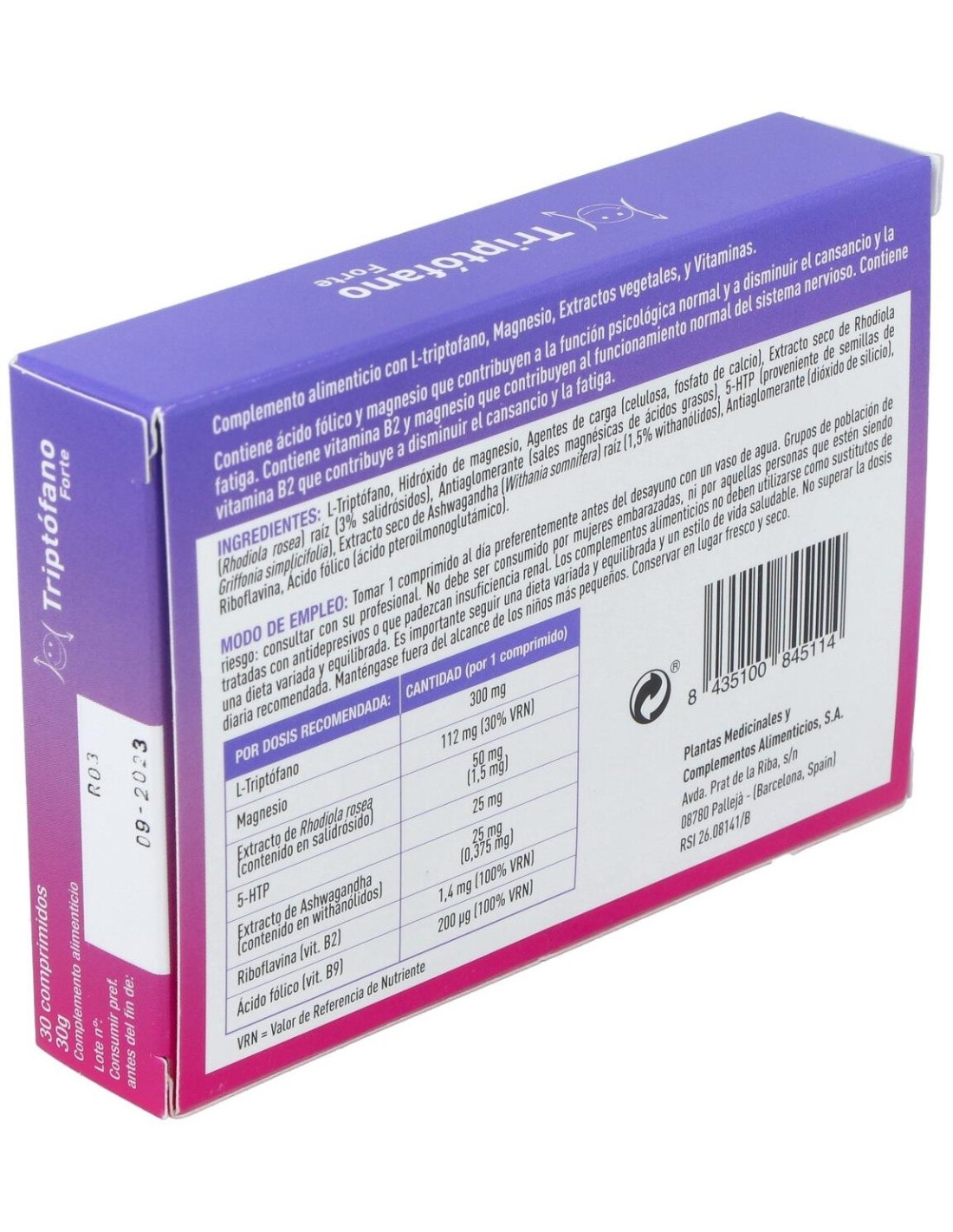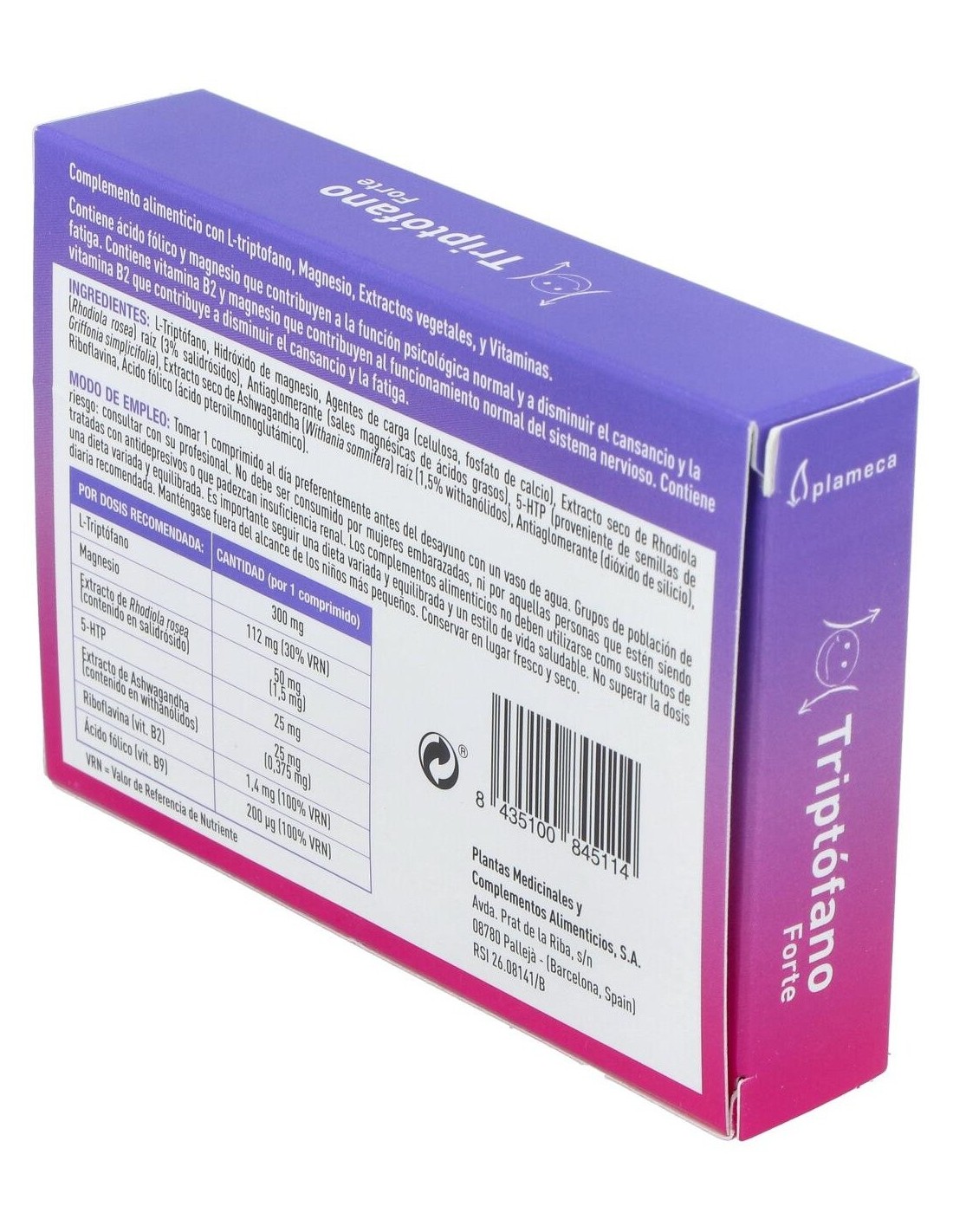 El Triptofano Forte 30Comp. de Plameca es un suplemento nutricional dirigido a adultos que buscan apoyar el bienestar emocional, formulado con triptófano para contribuir a la regulación del estado de ánimo.