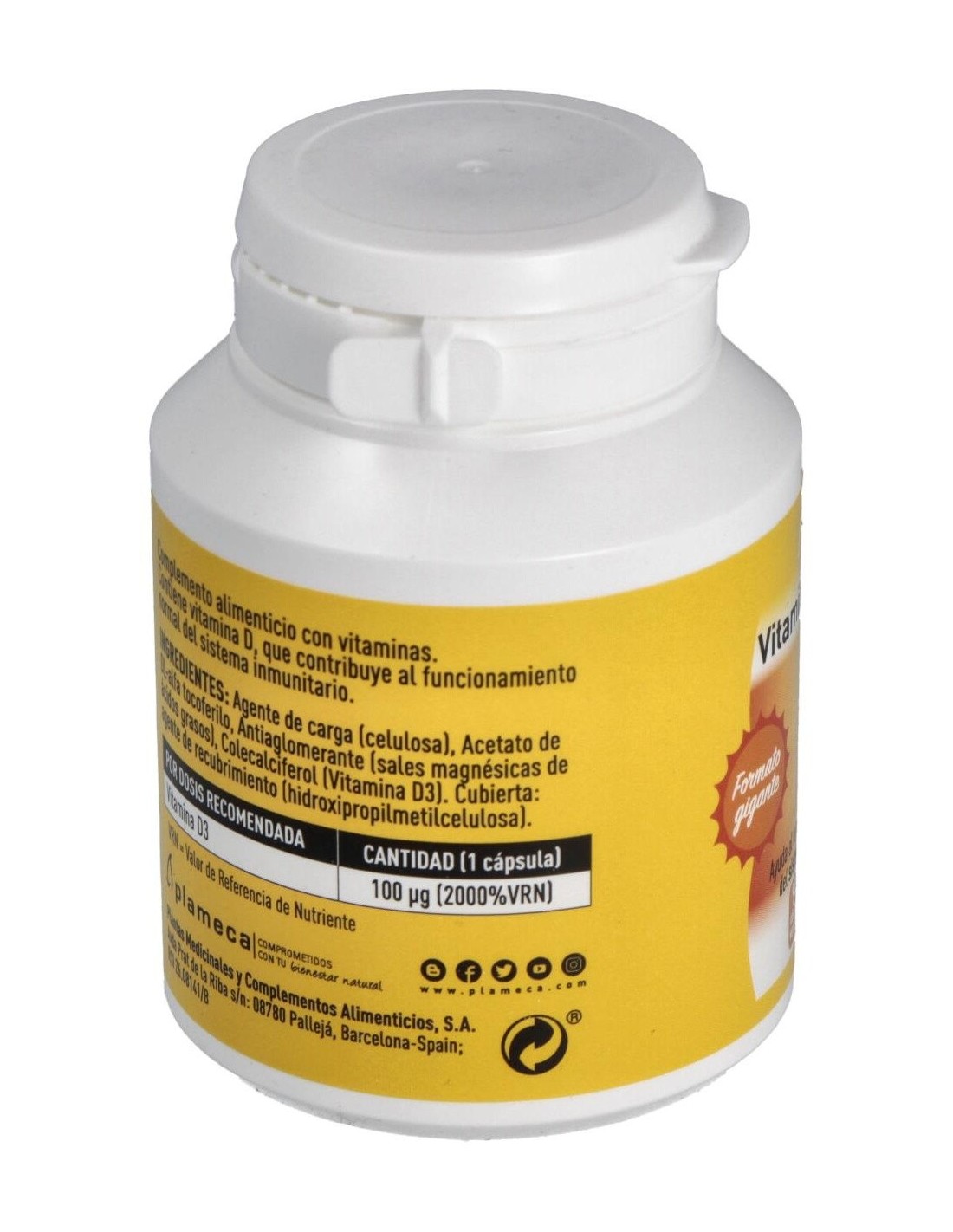 Plameca Vitamina D3 4000 Ui es un complemento alimenticio a base de vitamina D que contribuye al funcionamiento normal del sistema inmunitario y al mantenimiento de los huesos y los dientes en condiciones normales.