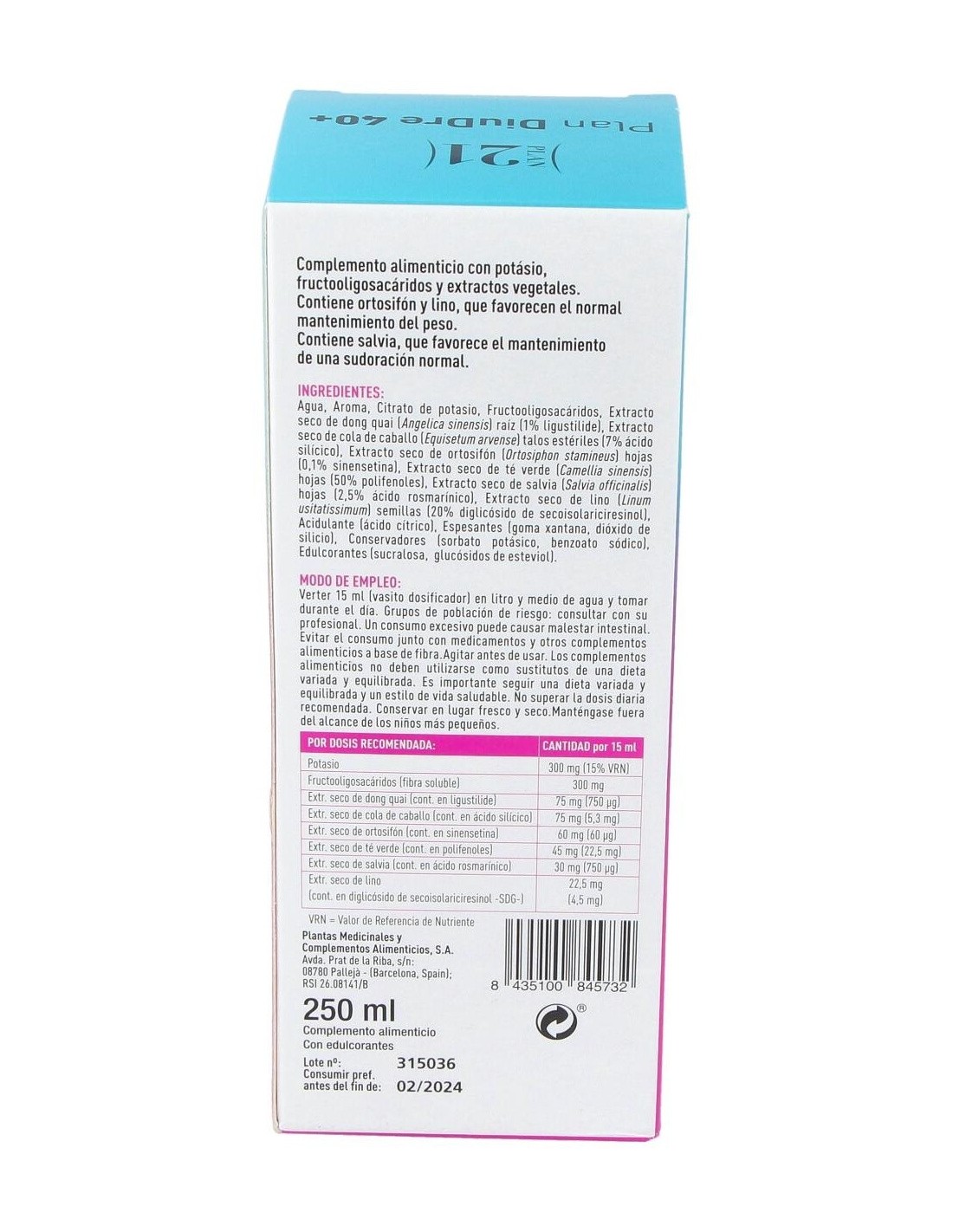 Plan 21 DiuDre 40+ es un drenante especialmente formulado para mujeres a partir de los 40 años: