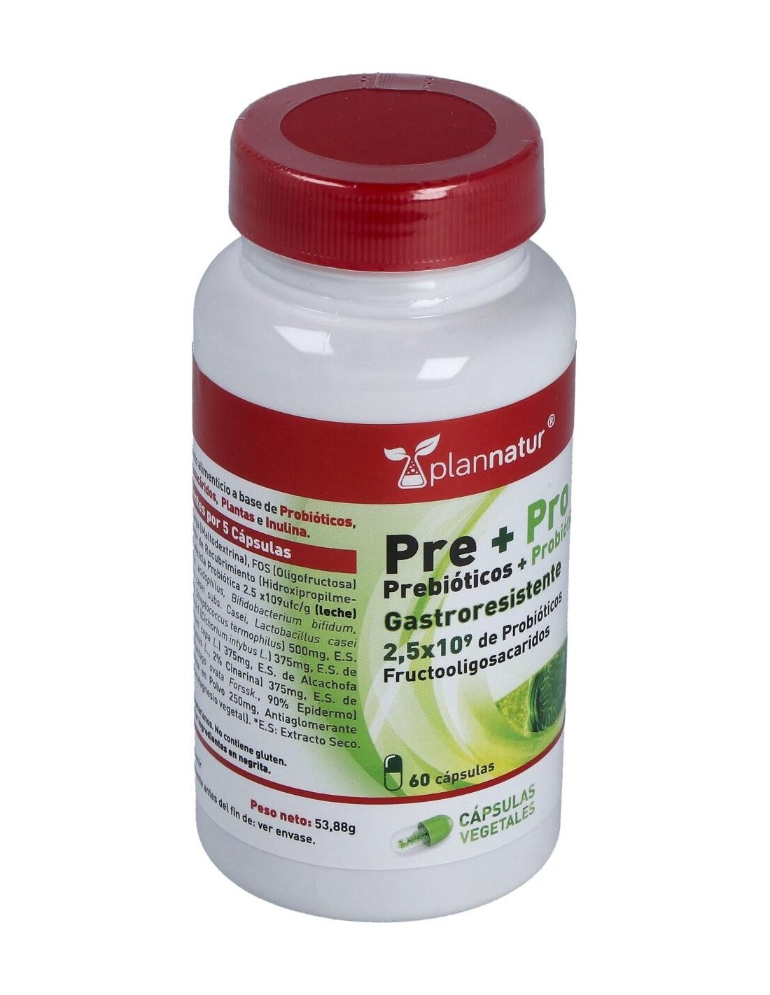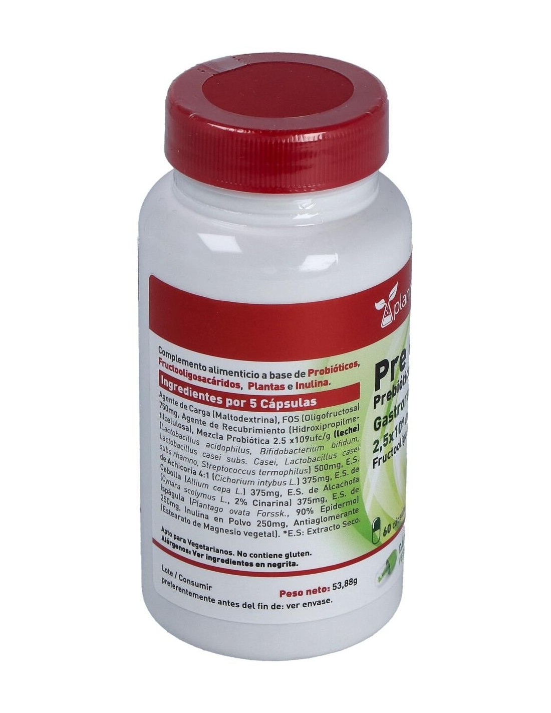 Prebióticos: E.S Achicoria 4:1, E.S Cebolla 10:1, E.S Alcachofa, Plantago ovata y Inulina.