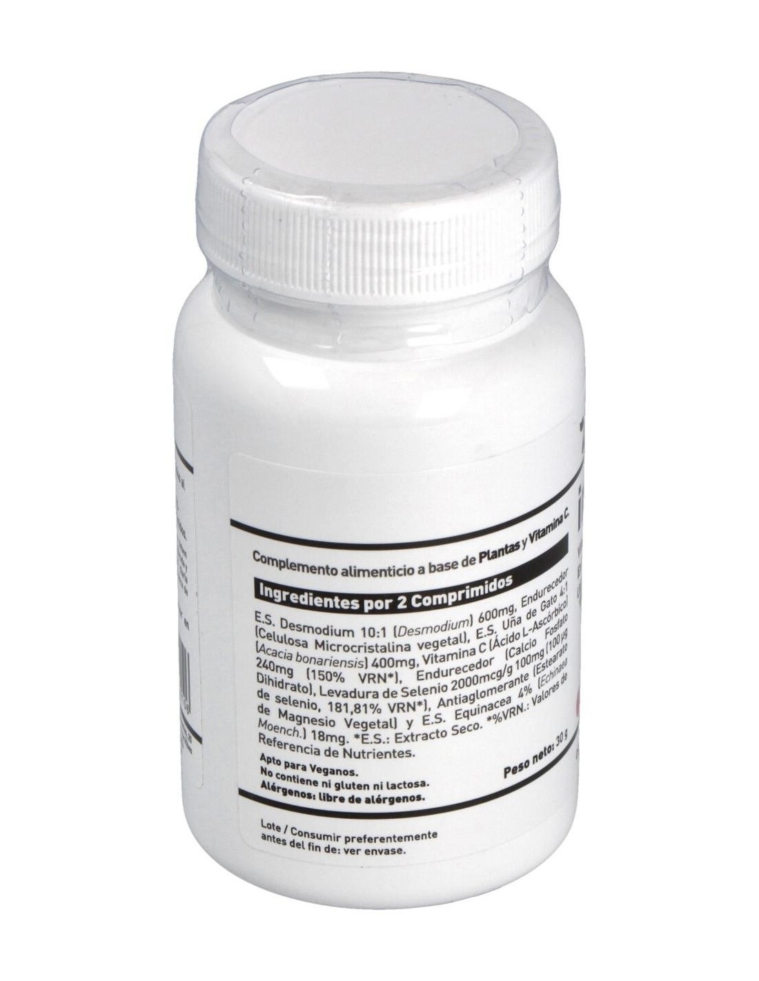 E.S. Desmodium 10:1, E.S. Uña de Gato 4:1, Vitamina C, Levadura de Selenio y Equinacea.
