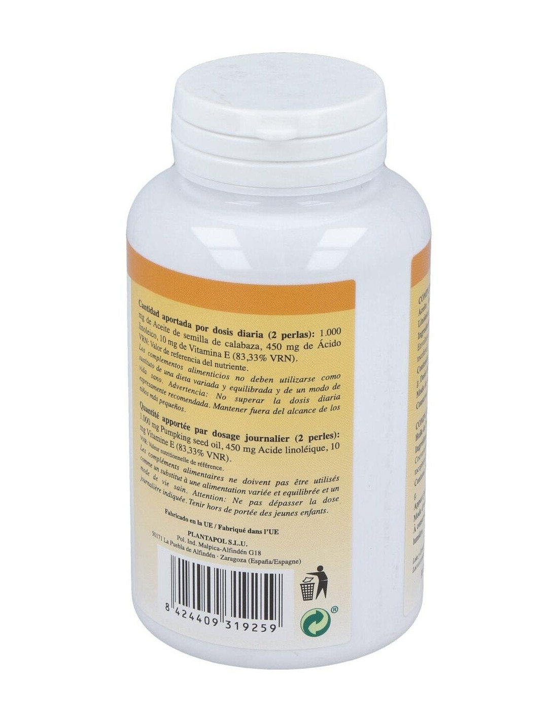 Cucurpol (Aceite de Calabaza) 100 Perlas de 705 mg de Plantapol es un suplemento natural para adultos que aporta ácidos grasos esenciales, favoreciendo el bienestar general mediante perlas fáciles de consumir.