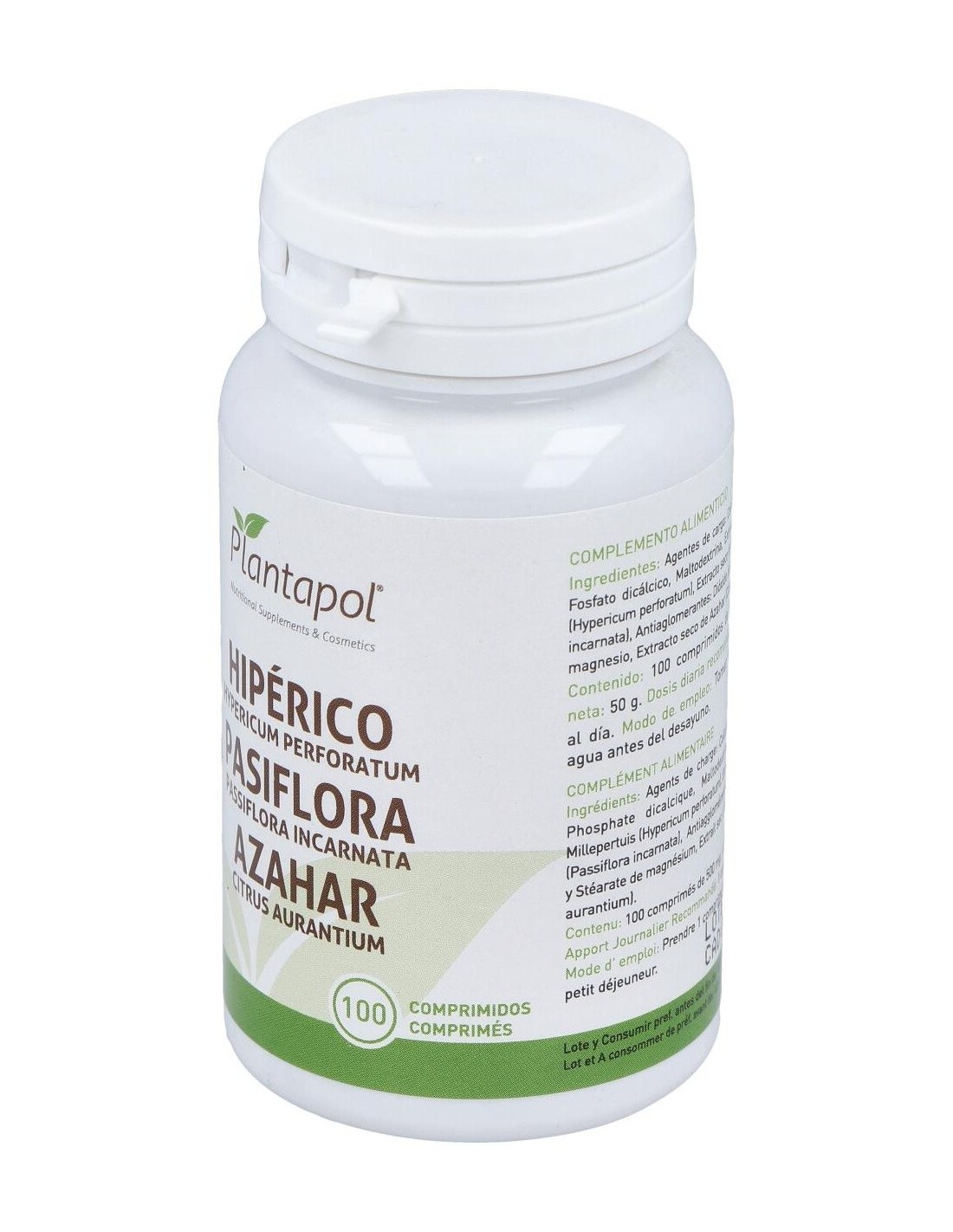 El Hipérico, Pasiflora, Azahar (100 Comprimidos 500 mg) de Plantapol es un suplemento natural para adultos que ayuda a mantener el bienestar emocional mediante una combinación de plantas tradicionales.