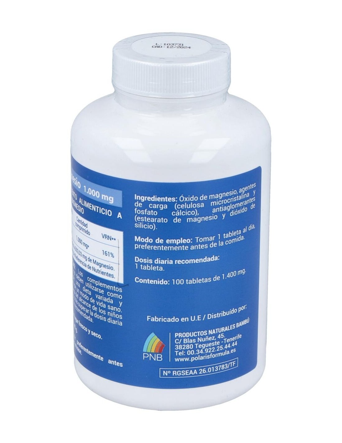 Magnesio 1000Mg. 100Comp. de Polaris ofrece una opción práctica para quienes buscan complementar su dieta con magnesio, apoyando hábitos saludables de forma sencilla y constante.