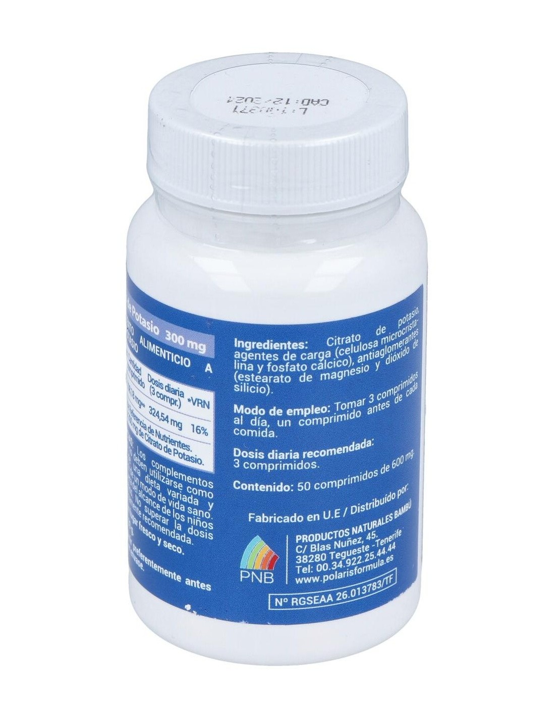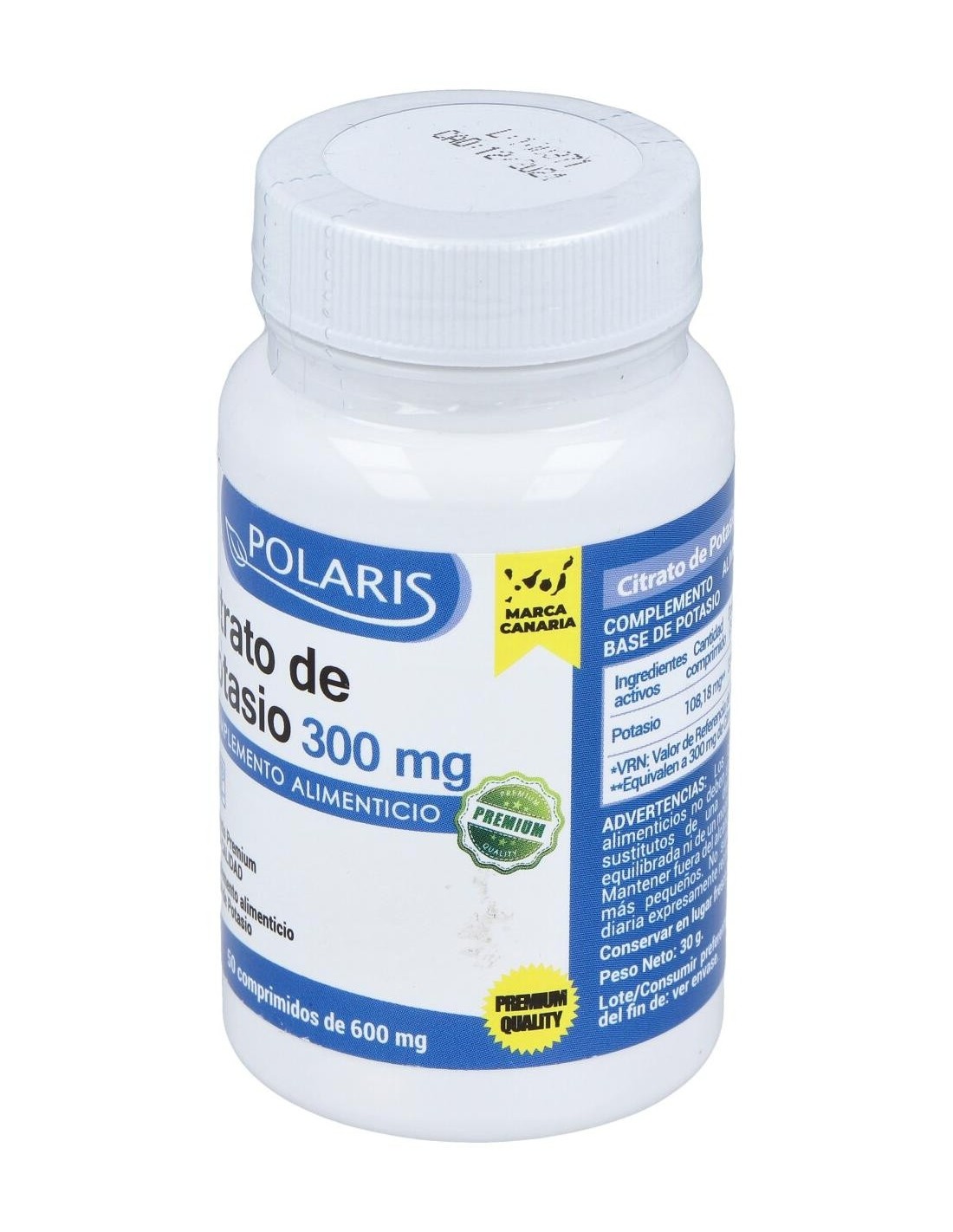 Polaris Citrato Potasio 300mg 50comp es un complemento alimenticio a base de potasio que ayuda a mantener el buen funcionamiento del sistema cardiovascular y renal.Modo de empleoTomar 3 comprimidos al día 1 antes de cada comida.