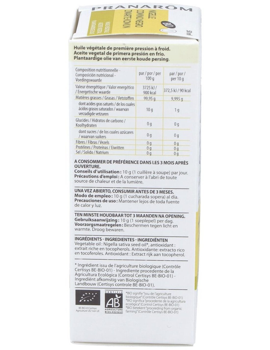 Comino Negro Aceite Vegetal Bio 50Ml. de Pranarom Aceites