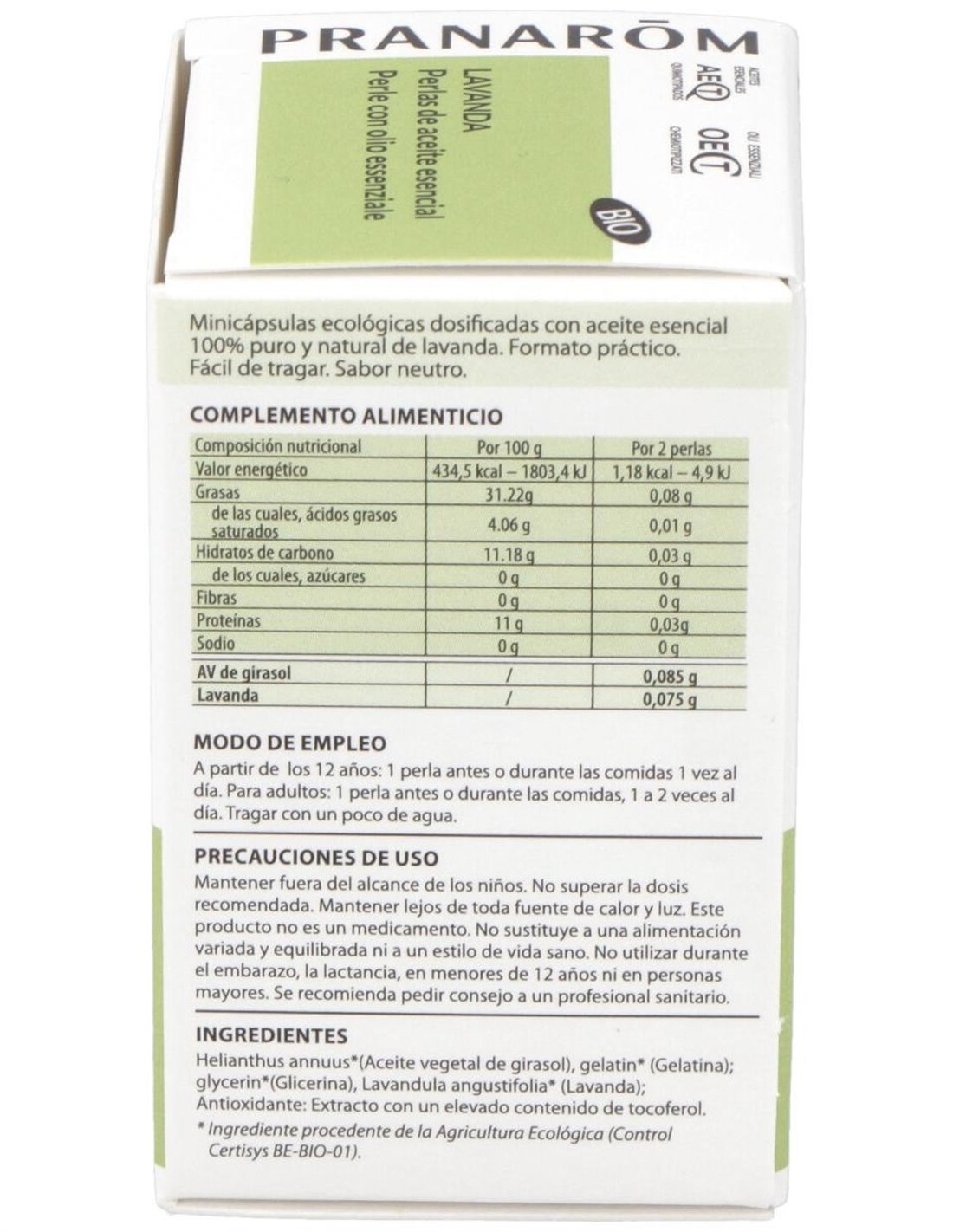 Lavanda Aceite Esencial En Perlas 60Perlas de Pranarom Aceites