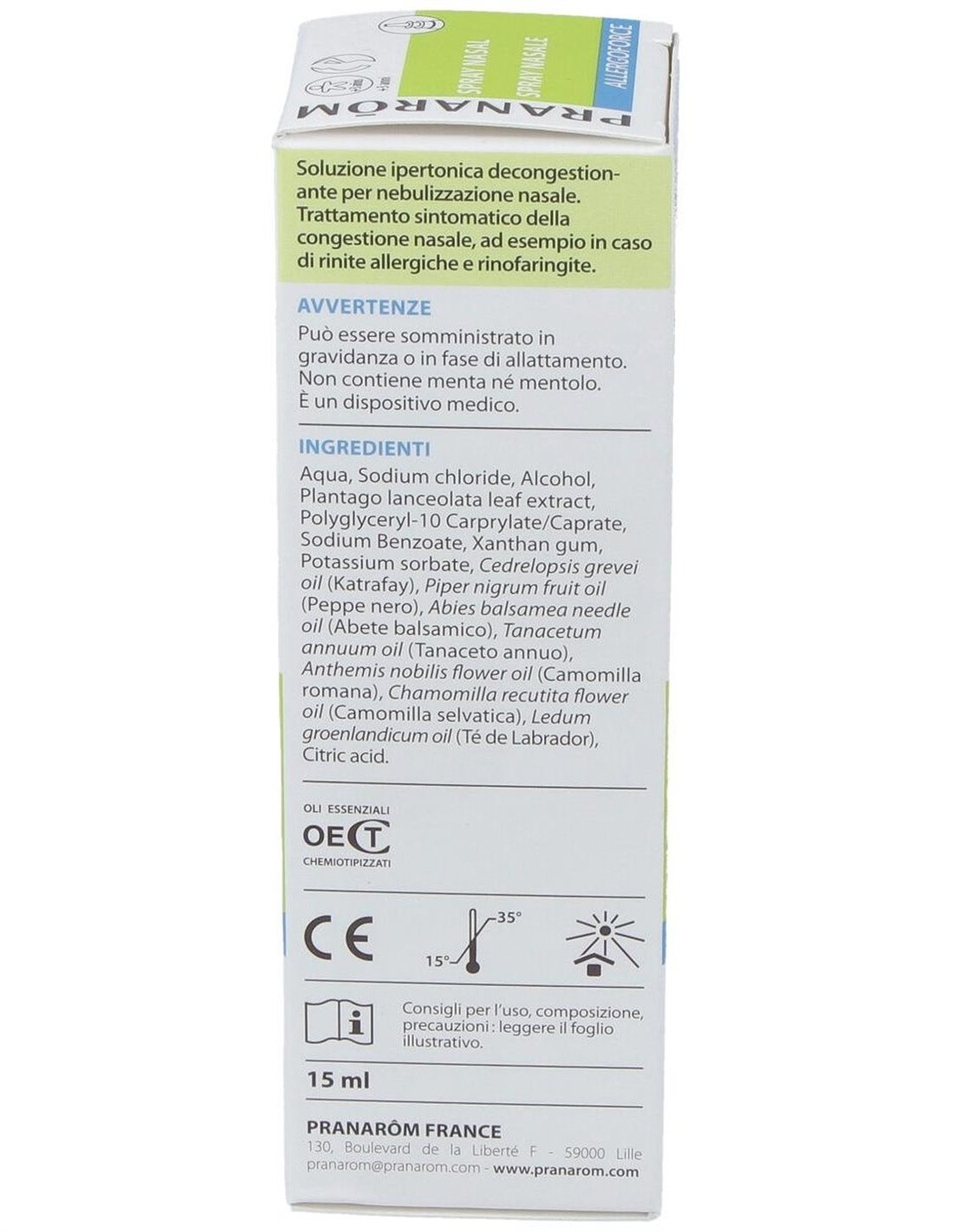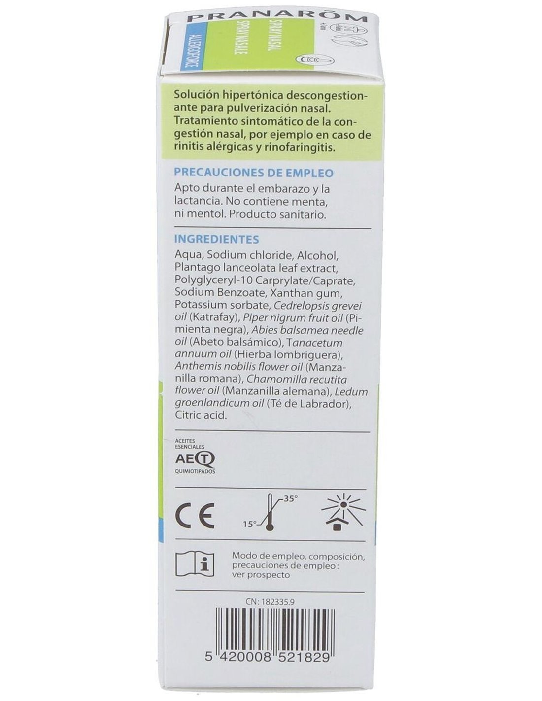 Reduce la congestión, el picor o la secreción nasal causadas por el polen, polvo doméstico, ácaros, etc. Apto durante el embarazo y la lactancia.