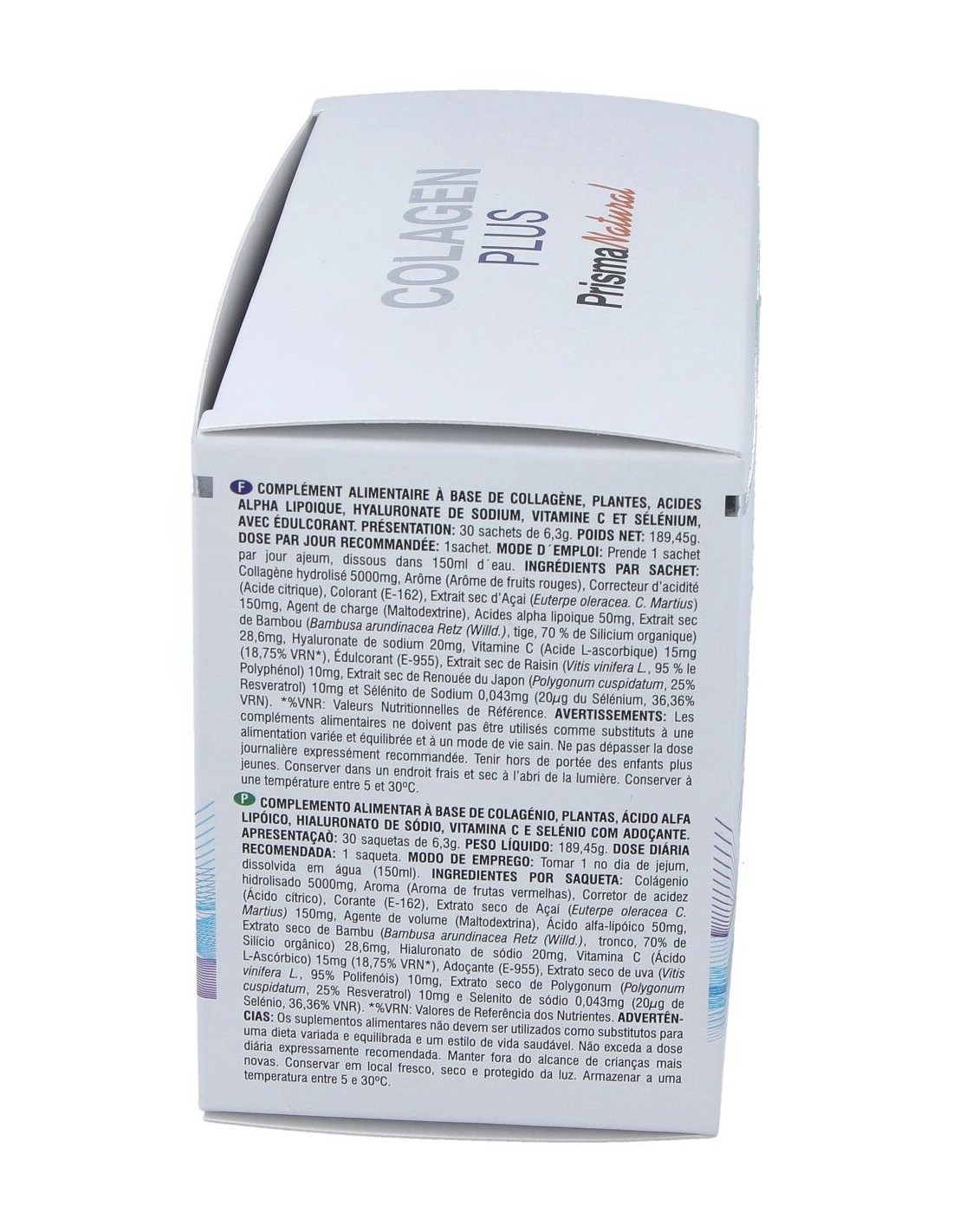 Colagen Plus 30Sbrs. de Prisma Natural ofrece una combinación de componentes que apoyan el mantenimiento de tejidos conectivos, adaptándose a estilos de vida que buscan complementar la nutrición diaria.