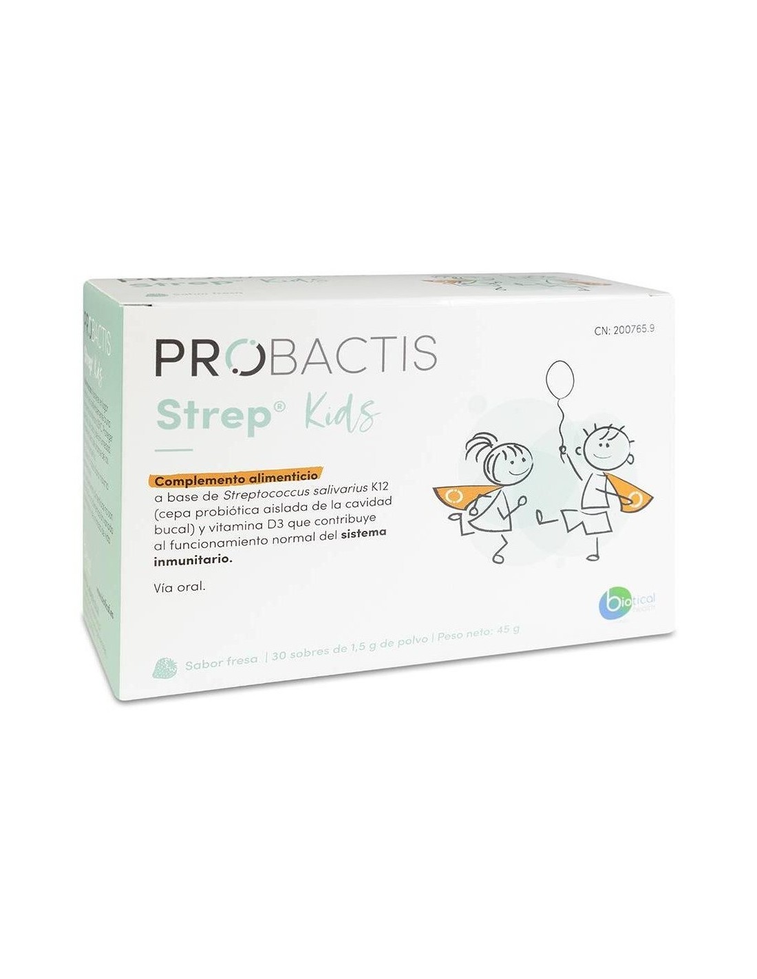 PROBACTISComplemento alimenticio para niños mayores de 3 años a base de Streptococcus salivarius K12 (cepa probiótica aislada de la cavidad bucal) y vitamina D3 que contribuye al funcionamiento normal del sistema inmunitario. Streptococcus salivarius es una de las cepas que habita de forma natural nuestra cavidad oral y que, al competir con los patógenos por el espacio y los nutrientes, no les deja proliferar.