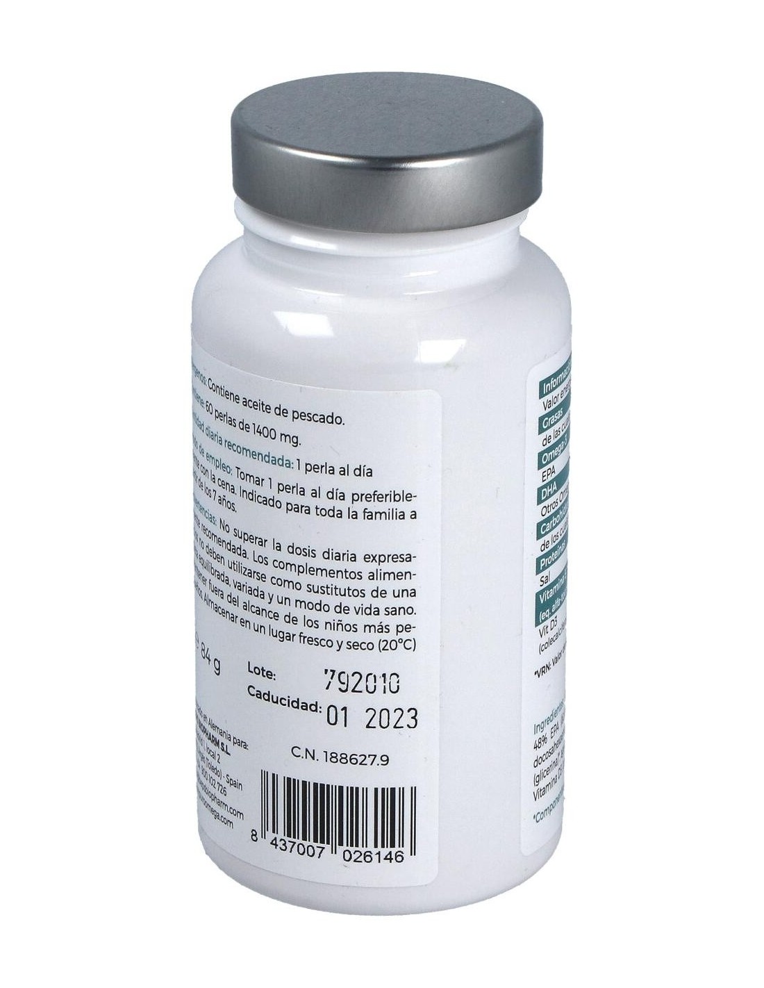 - Perlas con concentración de EPA que contribuyen a una ingesta equilibrada de ácidos grasos esenciales.