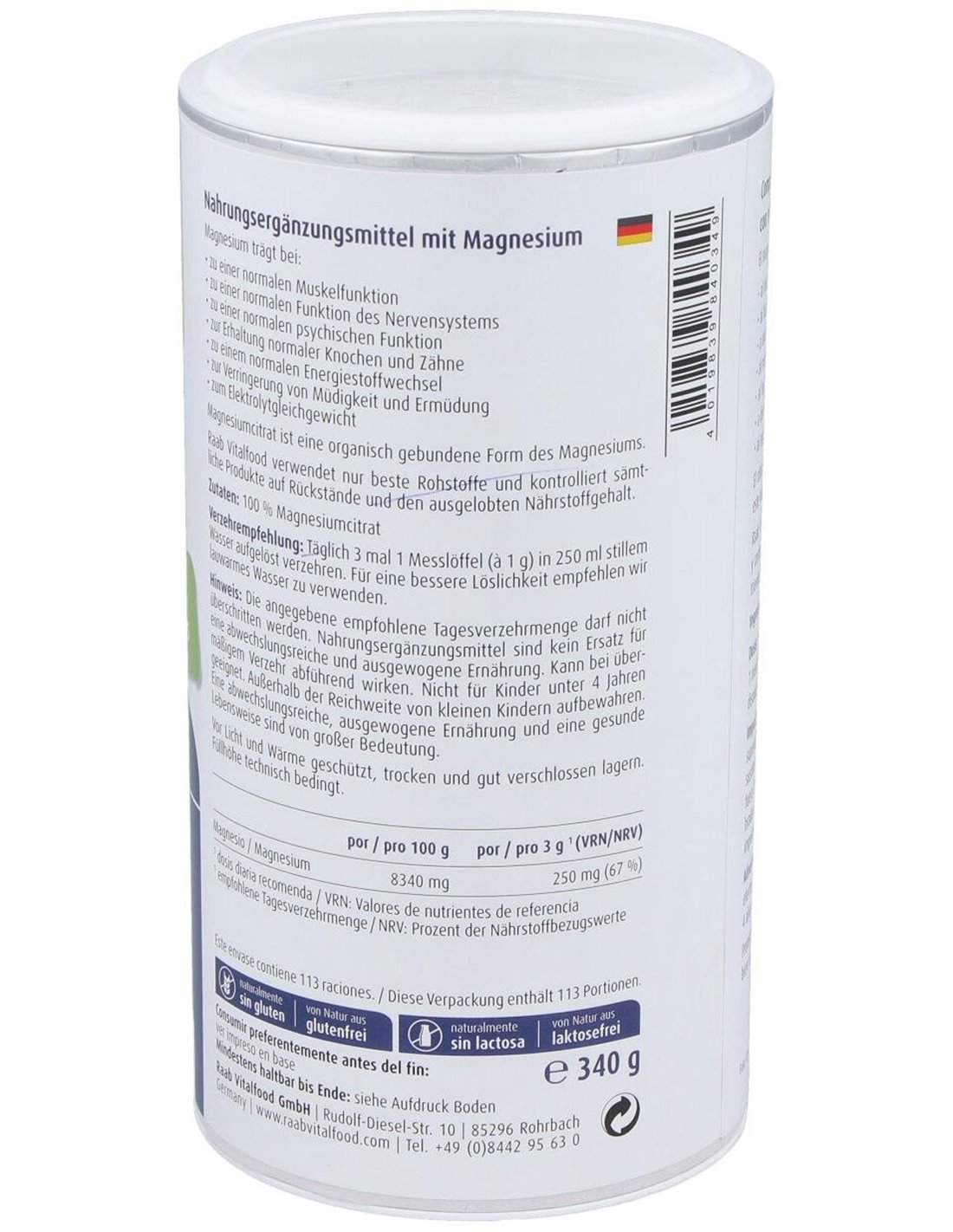Magnesio Citrato polvo, bote 340g de Raab Vitalfood