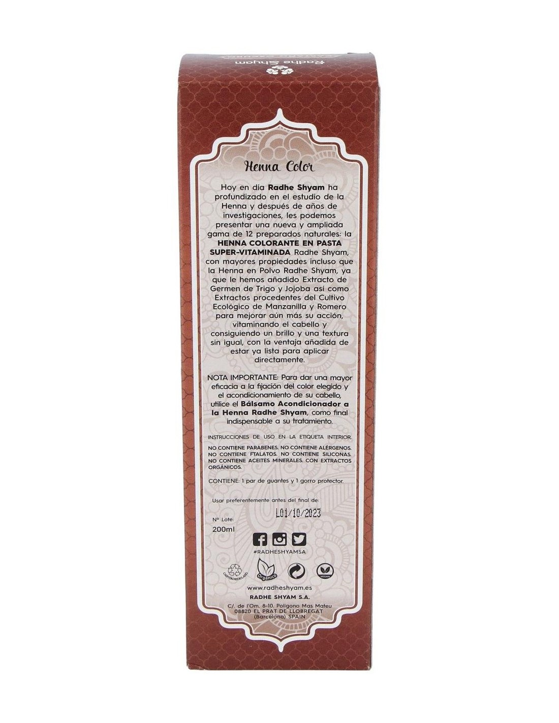 RADHE SHYAMHENNA PASTA CASTAÑO OSCURO 200gr. de RADHE SHYAM