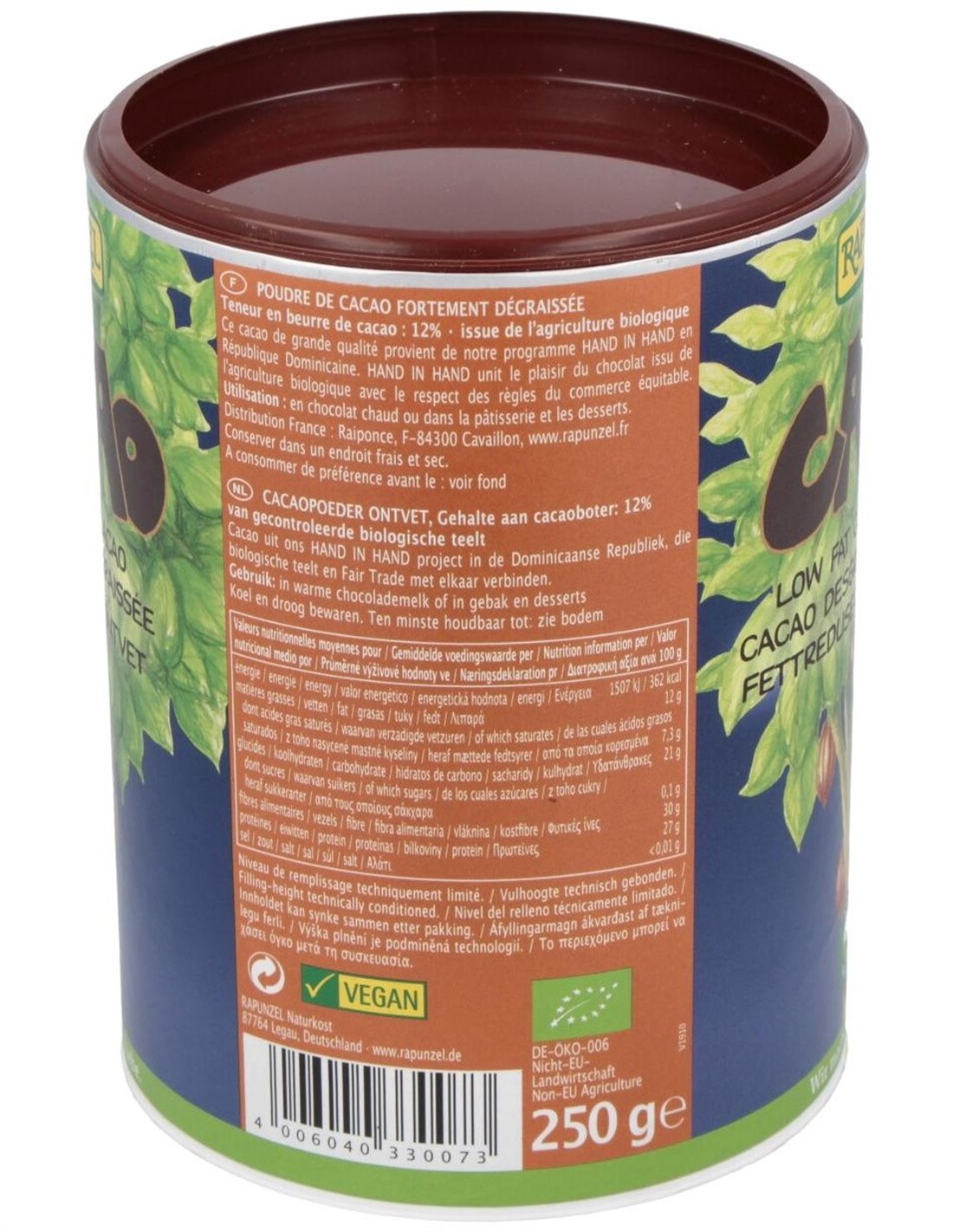 Cacao Desgrasado Polvo 250Gr. Bio S/A Vegan de Rapunzel