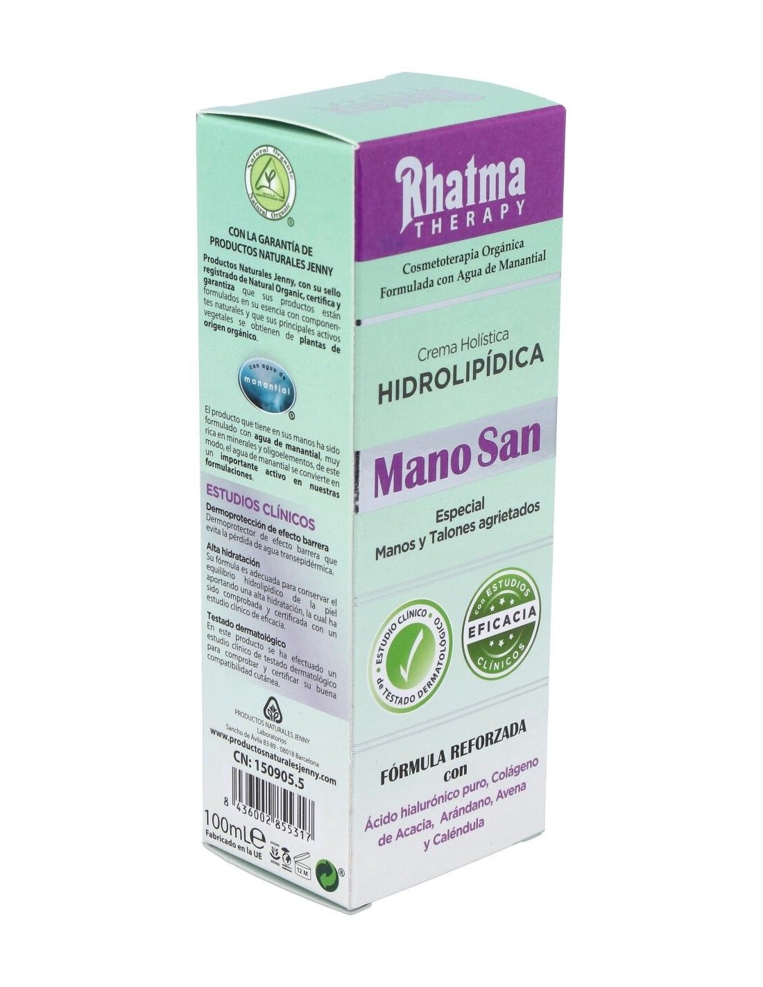 Rhatma Mano San crema para manos secas y sensibles es una suave loción perfecta para reparar las manos dañadas y extremadamente sensibles. Es un tratamiento óptimo para regenerar la cutícula, al mismo tiempo que endureza las uñas.