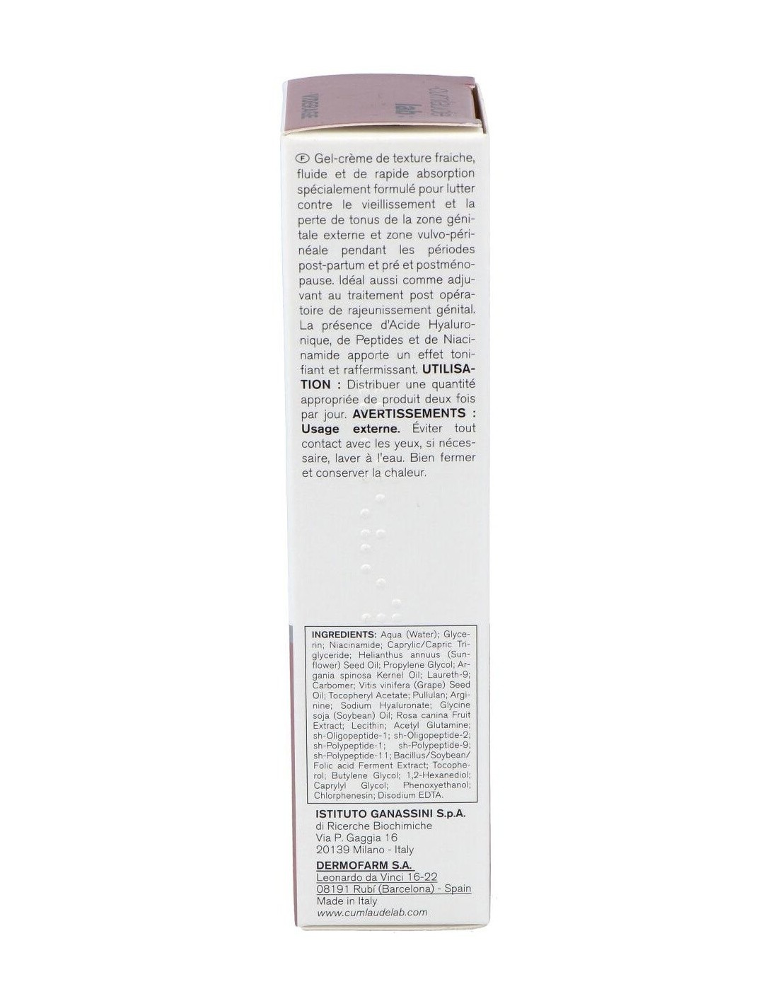 Gel-crema de textura fresca, fluida y de rápida absorción formulado de forma específica para contrarrestar el envejecimiento y la pérdida de tono de la zona genital externa y de la zona vulvo-perineal femenina durante el periodo pre y posmenopausia y en el posparto. Ideal también como coadyuvante en el tratamiento posquirúrgico de rejuvenecimiento genital. Debido a la presencia de Ácido hialurónico, Péptidos y Niacinamida ejerce una notable acción tonificante y reafirmante.