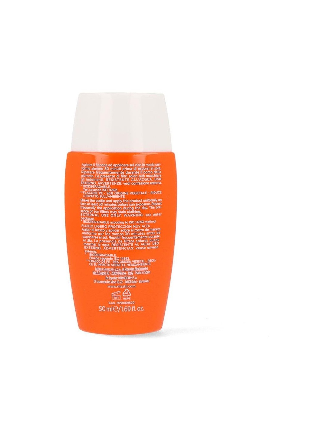 RILASTILFórmula innovadora sin emulsionantes de acción soft-focus y mate. Formulado para reducir el riesgo de irritación en los ojos. Previene la aparición de quemaduras, manchas y eritemas solares. Base acuosa y acabado dry touch.