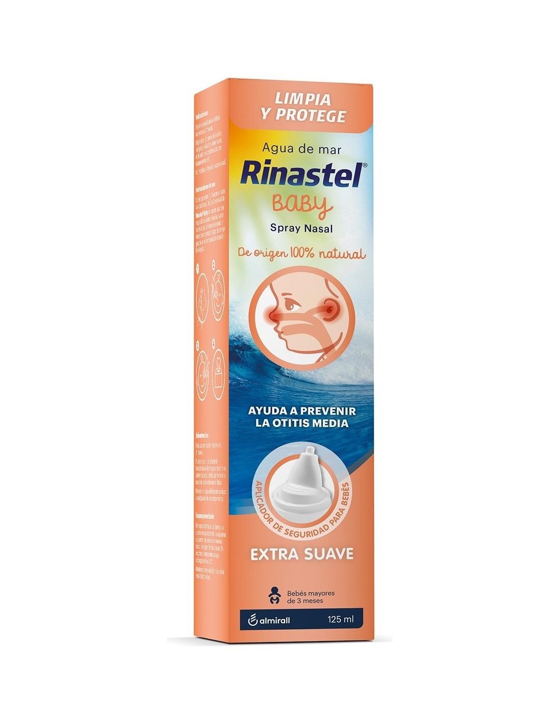 Spray nasal con Xilitol, de origen 100% natural, para bebés a partir de 3 meses para la limpieza y protección diaria de las fosas nasales. Ayuda a mejorar la calidad del sueño y a respirar mejor mientras comen.